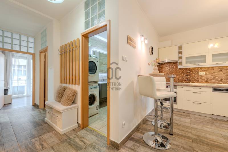 Modern Elegancia Belső-Ferencváros Szívében – Világos, 3 szobás, dupla komfortos otthon eladó! Keresi a tökéletes egyensúlyt a belvárosi pezsgés és az újszerű nyugalom között? Megtalálta! Eladásra kínálunk egy kiváló állapotú, 74 nm-es, 3 szobás, dupla fürdőszobás lakást a IX. kerület egyik legkedveltebb, 2006-ban épült modern házában.A lakáshoz opcionálisan vásárolható egy teremgarázs, aminek az ára: 10M Ft, ezt a lakás vételára nem tartalmazza. A Lakásról: Ahová csak költözni kellFény és Tér: A lakás rendkívül világos, jó elrendezésű, ahol minden négyzetméter a lakók kényelmét szolgálja.Modern kényelem: Beépített bútorok, tágas gardróbszekrények, klíma és házközponti fűtés garantálja a gondtalan mindennapokat.Dupla Komfort: A két fürdőszoba és a három különnyíló szoba ideális intimitást nyújt akár családoknak, akár pároknak.Panorámás Erkély: A 6 nm-es terasz tökéletes helyszín a reggeli kávéhoz vagy az esti kikapcsolódáshoz.Lokáció és Infrastruktúra: Minden karnyújtásnyiraBelső-Ferencváros az egyik legdinamikusabban fejlődő városrész, ahol az újszerű lakóparkok és a hangulatos sétálóutcák találkoznak.Közlekedés: Kiváló! A 3-as metró, a 4-6-os villamos és számos buszjárat pár perc alatt elérhető. Az üzleti negyed és a nagyobb csomópontok közelsége miatt az autós közlekedés is egyszerű.Oktatás és Család: A környéken neves iskolák, óvodák és egyetemek (Corvinus, ELTE, Semmelweis) találhatók, így hosszú távú befektetésnek is tökéletes.Életstílus: Éttermek, kézműves kávézók, a közeli Duna-part és a Nehru part zöld területei kínálnak kikapcsolódást. Bevásárlási lehetőség (Vásárcsarnok, üzletek) és kulturális pontok (Müpa, Nemzeti Színház) a szomszédban. Kinek ajánljuk?- Fiatal felnőtteknek és pároknak, akik szeretik a minimalista designt és a városi pörgést.- Kisebb családoknak, akiknek fontos a biztonság, a dupla fürdő és a közeli iskolák. - Befektetőknek, hiszen az egyetemek és irodaházak közelsége miatt a lakás azonnal, magas hozammal kiadható.Az ingatlan tehermentes és azonnal birtokba vehető!Ne maradjon le erről a lehetőségről! A Belső-Ferencvárosi újszerű lakások a leggyorsabban elkelő ingatlanok közé tartoznak.Kérdése van? Szeretné megtekinteni? Hívjon bizalommal, és nézzük meg együtt új otthonát!