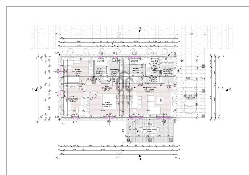 Székesfehérváron Maroshegyen, 578 m2-es saját telekkel, ÚJ ÉPÍTÉSŰ, DK-i tájolású nettó 94,1 0 nm-es 3 hálószobás, nappali-konyha-étkezős, teraszos családi ház eladó!Rövid műszaki leírás: 5. ház* Telek:578 nm* Amerikai konyhás nappali étkezővel, 3 szoba, fürdőszoba, 2 illemhelység, terasz, 1 fedett kocsibeálló* 94,1 nm hasznos alapterület + 18 nm-es pergolával fedett terasz* A ház 30 cm vastag Leier 30 N+F tégla falazattal, 15 cm homlokzati hőszigeteléssel, 12 cm aljzatszigeteléssel, 30 cm üveggyapot padlásszigeteléssel épül* Fűtés: padlófűtés, az épület hőellátása levegő-víz hőszivattyúról történik* Melegvizet elektromos kazán biztosítja* Tető 30 fokos nyeregtetős, fa födémes, beton tetőcseréppel fedett* Igény esetén napelem rendszer is telepíthető* Fehér 3 rétegű műanyag nyílászárók kerülnek beépítésre, redőnnyel, szúnyoghálóval felszerelve* Elektromos hálózat 3*25A* Burkolat: konyhában, közlekedő részen, fürdőszobában, mellékhelyiségben járólap, nappaliban, szobákban laminált parketta, terasz térkövezett* Épület körül kavics járda szegélykő, külső terasz térkő burkolat + gépkocsibeállóKörnyék:Az épületek családi házas, kertvárosias környezetben helyezkednek el. A környéken bölcsőde, óvoda, iskola, orvosi rendelő, gyógyszertár és bevásárlóközpont is megtalálható.A részletekkel kapcsolatban keressen bizalommal!Ha a vásárláshoz a jelenlegi ingatlana eladására van szükség, akkor abban is szívesen együttműködöm Önnel!Amennyiben hitelre van szüksége, az Otthon Centrum az ország egyik legnagyobb és legmegbízhatóbb hitelközvetítőjeként, teljes körű és díjmentes hitel ügyintézéssel áll ügyfelei rendelkezésére.