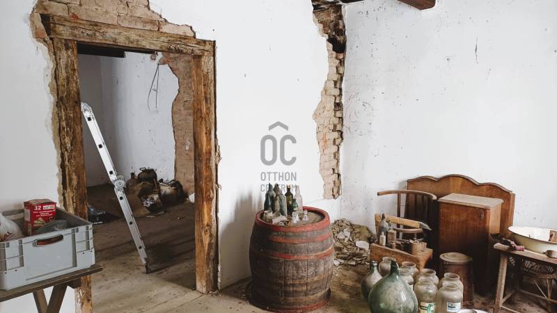 ELADÓ EGY 115 ÉVES, VALÓDI KÜLÖNLEGESSÉGNEK SZÁMÍTÓ, FELÚJÍTANDÓ GAZDASÁGI ÉPÜLET ZALAKAROSON. EGYEDÜL IRODÁNKNÁL ELÉRHETŐ EZ A KURIÓZUM !Természet közeli környezetben, virágos rétekig nyúló utcácska végén, saroktelken találjuk a romantikus \"vincellérházat\" a kedvelt termálfürdőtől minössze 2,5 km-re.Az ingatlan zártkerti besorolású, a tulajdoni lapon \"művelési ágból kivett gazdasági épület és udvar\"-ként szerepel. Kifüggeszteni nem kell, gyorsan birtokba vehető. Aszfaltozot úton közelíthető meg a házikó. A telek 646 m2, alkalmas egy csodás pihenőkert kialakítására, amely méreténél fogva kevés munkával, ráfordítással karban tartható.Egyéb lényeges jellemzők: - A ház téglából készült, cserép fedéssel. Kereszt formájú, 60 m2-es hasznos földszinti alapterületű, alatta borospince.- A renováláshoz már kiürítették az épületet. A jelenlegi felosztás alapján tervezett helyiségek: szélfogó, közel 30 m2 nagyságú nappali, konyha és fürdőszoba, a tetőtérbe további szoba kerülhet. ( Alaprajz a képek között) Az elkészült részletes tervek rendelkezésre állnak. - Új villanyórát kapott az épület, 3 x 25 Amper árammal. Vezetékes víz nemrég került a telekre, vízóraaknába, mérővel. Egy új, 6 m3-t befogadó Grünwald szennyvíztáróló van a földben. A kertben egy 25 m mély ásott kútból vehető öntözővíz.Az ingatlan nem áll védettség alatt, ezért a felújításnál nincsenek megkötések. A néhány ötletkép önmagáért beszél, sugallatok a lehetőségek tárházából.Rugalmasan, a hét bármely napján szívesen megmutatjuk a mesés hangulatú házat. Érdemes személyesen megtekinteni, szerelem lehet első látásra !