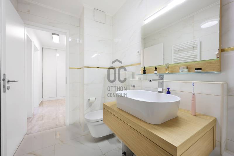 Fedezd fel ezt a kivételes, családok számára ideális lakást Budapest 14. kerületében, Alsórákoson! Ez az újszerű ingatlan nemcsak hogy kiváló állapotban van, de minden részletében a prémium kivitelezés és az egyedi tervezés jegyében készült. Az ingatlan alapterülete 119 nm, négy tágas szobával és két fürdőszobával rendelkezik, így bőven van hely a család minden tagjának. Az amerikai konyhás, konyhaszigetes nappali világos és barátságos, ideális helyszín a közös családi programokhoz. A modern beépített bútorok és szekrények, valamint a motoros redőnyök a kényelmet és a praktikumot szolgálják. A lakás különlegessége a 120 nm-es terasz, ahol a gyönyörű panoráma mellett élvezheted a friss levegőt és a csendes kertvárosi környezetet. A terszon körben nagy méretű kaspók kerültek , telefonról vezérelhető locslórendszerrel. Az ingatlan tehermentes, így azonnal birtokba vehető, és a házközponti fűtés egyedi méréssel biztosítja a kényelmes hőmérsékletet, míg a klíma a nyári hónapokban nyújt kellemes hűsítést.Az ingatlan vételára tartalmazza a teljes bútorzatot is. A környék ellátottsága kiváló, a közeli boltok, iskolák és óvodák mindössze pár percnyire találhatóak, így a mindennapi ügyintézés rendkívül egyszerű. A kitűnő közlekedésnek köszönhetően könnyedén elérheted a város többi részét, legyen szó autós vagy tömegközlekedési lehetőségekről. A csendes utcák és a biztonságos környezet ideális helyszínt biztosítanak a családosok számára, ahol a gyerekek biztonságban játszhatnak. Ez a lakás nemcsak otthon, hanem befektetési lehetőség is, hiszen a környék folyamatosan fejlődik, a kereslet pedig stabil. Van lehetőség kettő darab gépkocsibeálló helyet vásárólni teremgarázsban. Ha kérdéseid lennének az ingatlannal kapcsolatban, vagy szeretnéd megtekinteni, bátran keress meg! Bizalommal állok rendelkezésedre, hogy segítségedre legyek a legjobb döntés meghozatalában. Ne hagyd ki ezt a páratlan lehetőséget, hiszen egy ilyen ingatlan ritkán kerül a piacra!