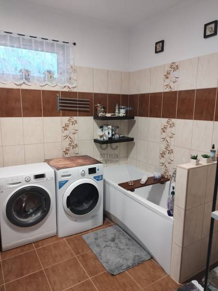 Egy igazán jó ingatlan ott kezdődik, ahol a mindennapi kényelem, az élhető belső terek és a gondosan kialakított kert találkozik. Ez a tököli családi ház nem kompromisszumokra épül: frekventált, mégis jól élhető környezetben kínál azonnal élvezhető otthont, bőséges műszaki tartalommal és ritkán elérhető kertkapcsolattal.Ingatlan adatai és főbb jellemzői: - Elhelyezkedés: Tököl, frekventált, kiváló infrastruktúrával ellátott utca - Ingatlan típusa: önálló, földszintes családi ház - Építés éve: 2011 - Állapot: újszerű, azonnal költözhető - Lakóterület: 85 m² - Telek mérete: 647 m² - Elosztás: amerikai konyhás nappali + 3 hálószoba - Fürdőszoba: 1 db, WC-vel - Külön WC: igen Műszaki tartalom és komfort: - 10 cm dryvit külső hőszigetelés - fűtés gázkazánnal - vízteres kandalló - hűtő–fűtő klímaberendezés - elektromos kapu - videó kaputelefon - riasztórendszerKert, udvar és extrák: - parkosított, privát kert - automata öntözőrendszer - fúrt kút - műfű és természetes zöldfelületek kombinációja - veteményes emelt ágyásokkal - gyümölcsös kert - nagyméretű mediterrán terasz - udvari tiki bár - 3 db különálló tárolóépületParkolás - telken belül legalább 6 autó számára - nyitott kocsibeállóKörnyék és elérhetőség - HÉV-megálló, buszmegálló 3 percen belül - bolt, óvoda, általános iskola, benzinkút pár perc sétára - kiváló infrastruktúra, mindennapi ügyintézés autó nélkül is megoldhatóKinek ideális választás?Ajánlom azoknak a családoknak és pároknak, akik nem felújítással, hanem élettel szeretnének foglalkozni, értékelik a nagy kertet, a jól átgondolt extrákat és a gyors, kényelmes közlekedést.Ha egy valóban „beköltözni és élvezni” típusú otthont keres Tököl egyik legjobb adottságú részén, érdemes személyesen is megnézni – egyeztessünk időpontot, és megmutatom Önnek!