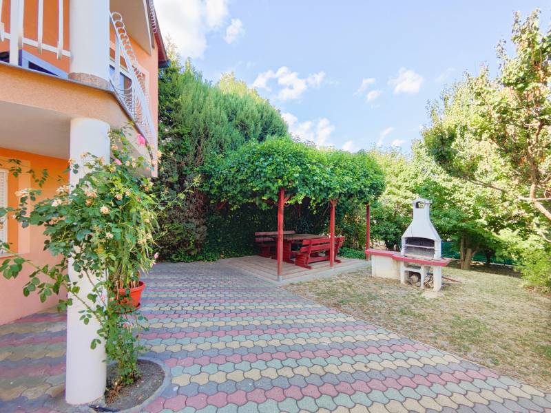 Zalakaroson, egyedi tervezés alapján minőségi anyagokból épült házat kínálok eladásra.A fürdőváros egyik kedvenc utcájában közel a központhoz, mégis csendes helyen. Ráadásul a keleti oldalról gyönyörű kilátás nyílik a környező zalai dombságra.2000-ben, 30 cm-es Porotherm téglából épült és 10 cm-es homlokzati hőszigetelést is kapott.Ezeknek köszönhetően a cirkó gázkazánnal és cserépkályha fűtéssel gazdaságosan fenntartható.A nyílászárók műanyagok, a hálószobákban szúnyoghálók is vannak.A gondos tulajdonosoknak köszönhetően a folyamatosan karbantartott épület állapota újszerű.Helyiségei: 1 nappali konyhával és étkezővel (itt található a cserépkályha is), 4 szoba, 2 fürdőszoba, gardrób helyiség, lépcsőház,tároló, garázs. A hátsó fedett terasz mellett épített grillező található.A kert gondozott, díszcserjékkel és gyümölcsfákkal.A vételár a megkímélt és minőségi anyagokból készült berendezéseket is tartalmazza.Előre egyeztetett időpontban megtekinthető, várom megtisztelő hívását!Az adatok kizárólag a megbízóink által rendelkezésünkre bocsátott információkon alapulnak.Fentiekre tekintettel, az adatok teljességéért, helyességéért és aktualitásáért nem vállalunk felelősséget.Az árváltozás, adatmódosítás és közbeni értékesítés jogát fenntartjuk, mindezekért jogi felelősséget nem áll módunkban vállalni.