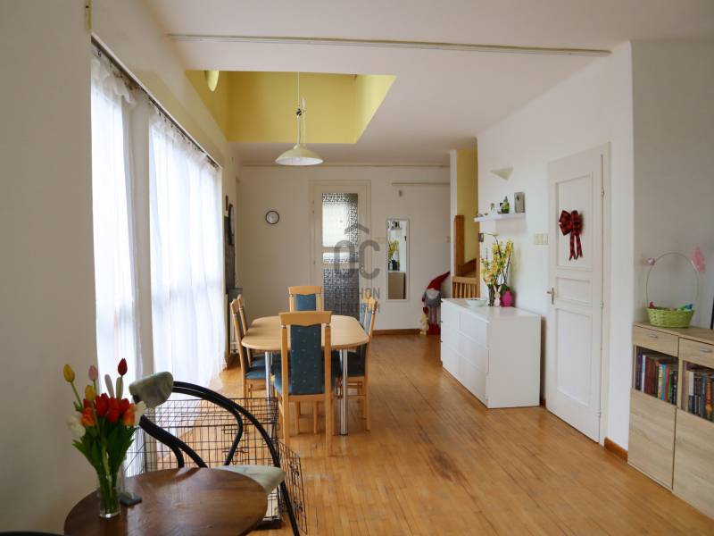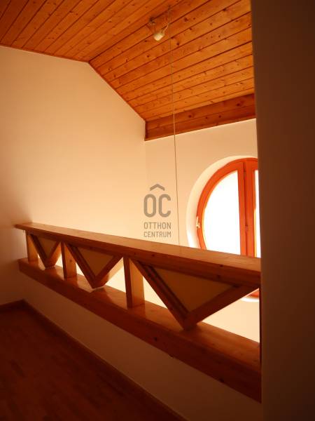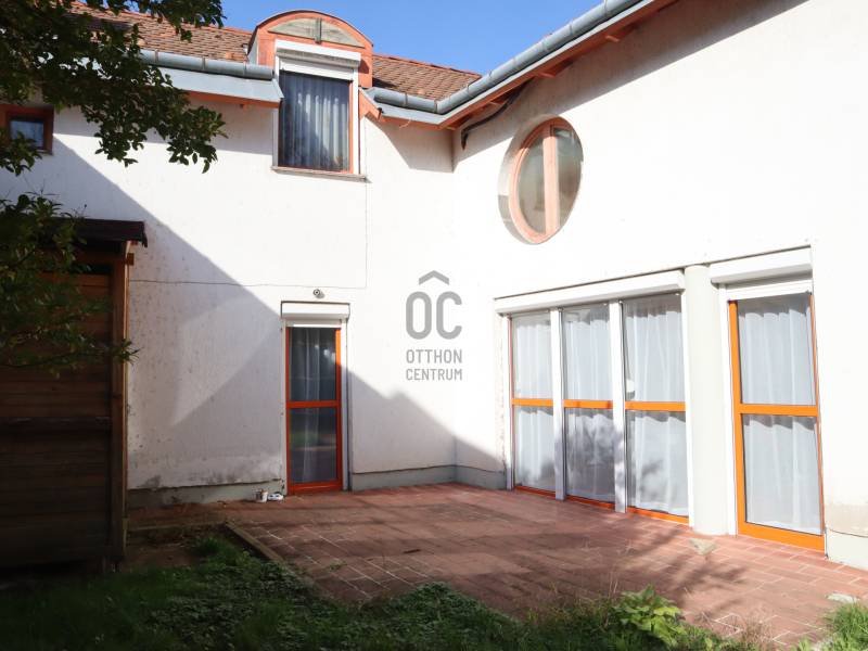Csendes, zöld, családias környezetben lakóparki lakás eladó!Kőszegen, csendes, családias lakóparkban vált eladóvá ez a kertkapcsolatos, kertre néző, 180 nm-es, egyedi tervezésű, kétszintes sorházi lakás.Az ingatlan Kőszeg kedvelt lakóövezetében, csendes, nyugodt környezetben, a belvároshoz közel helyezkedik el egy 4 lakásból álló sorházban.A lakás földszintjén előszoba, konyha, étkező, nappali, egy hálószoba, egy kisebb fürdőszoba, kazánház, kamra és tárolóhelyiségek kaptak helyet. A nappaliból és az étkezőből jutunk a két teraszra, onnan pedig a kizárólagos használati joggal rendelkező, jól szeparált, 542 nm-es parkosított kertbe.Szép kivitelű, kényelmes lépcső vezet az emeletre, ahol 5 hálószoba, 2 fürdőszoba, egy gardróbszoba van, valamint a folyosón beépített szekrény szolgálja a tárolási lehetőséget. A galéria jellegű folyosóról beláthatjuk a díjnyertes tervezésnek köszönhető izgalmas, napfényes tereket.Az ingatlan hőszigetelt műanyag nyílászárókkal szerelt, a fűtésről és a melegvíz-ellátásról egy puffertartállyal kiegészített kondenzációs gázkazán gondoskodik.A ház előtt 2 gépkocsi számára biztosított a parkolás lehetősége, vagy akár fedett parkoló is kialakítható az épület mellett.A lakás átlagos állapotú, igény szerint felújítandó, remek adottságokkal bíró ritkaság az ingatlanpiacon.Kiváló lehetőség nagycsaládosoknak, összeköltözőknek, de akár önálló családi ház alternatíváját keresőknek is. Számos lehetőséget rejt magában ez a különleges tervezésű ház, mely csak Önre vár, hogy új élettel töltse meg napfényes tereit!További információkért és megtekintési időpont foglalásáért kérem, hívjon bizalommal!Hitelre van szüksége? Az Otthon Centrum az ország egyik legnagyobb és legmegbízhatóbb hitelközvetítőjeként, teljes körű és díjmentes hitel ügyintézéssel, biztosításkötéssel áll rendelkezésére! Kérje személyre szabott ajánlatunkat Kollégáinktól!Válassza ki az Önnek legmegfelelőbbet!