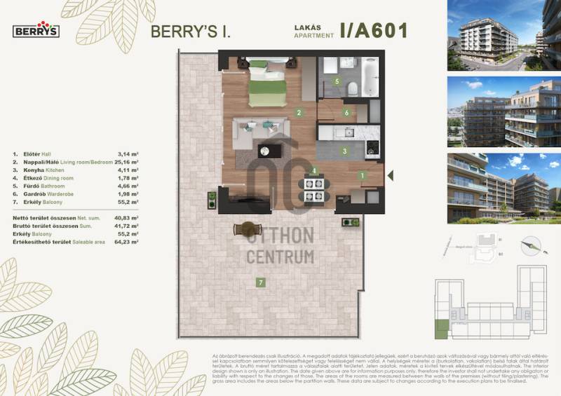 Projekt bemutatásaA XI. kerületi Bartók Béla úthoz közel épülő lakópark egy csendes, nyugodt környezetet kínál a város forgatagához közel. Az újbudai városrészben kialakított új lakónegyed kiváló közlekedési kapcsolatokkal rendelkezik. A zsákutcából nyíló elhelyezkedés biztosítja a forgalommentes, zavartalan lakókörnyezeti életet.A lakópark elhelyezkedése ideális azok számára, akik gyorsan és kényelmesen szeretnék elérni a város bármely pontját. A 4-es metró közelsége, az 1-2 perc sétatávolságra elérhető villamosok és a környéken közlekedő nappali és éjszakai autóbuszjáratok kiváló közlekedési lehetőséget biztosítanak. Az M1-es és M7-es autópályák közelsége, vagy a Kelenföld vasútállomás megkönnyíti az ország minden részébe, kiemelten a Balatonhoz és a Velencei tóhoz tervezett utazásokat.A legmodernebb mennyezeti hűtő- fűtő rendszernek köszönhetően alacsony fenntartási költségek várnak. A zöldtetők és az épület körüli zöldterületek nemcsak természetes hőszigetelést adnak, de a közösségi életet is támogatják.A gyönyörű kilátás nyugalma a városi nyüzsgés harmóniájával. A Berry’s minden lakásához tartozik loggia, erkély, vagy terasz!Várható műszaki átadás: 2027 vége