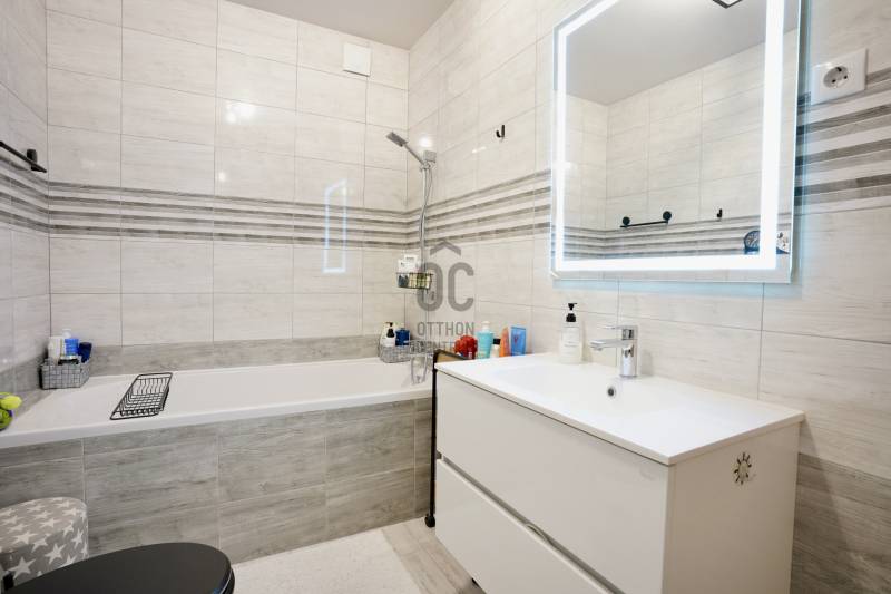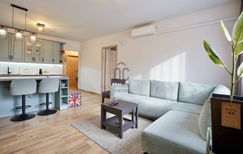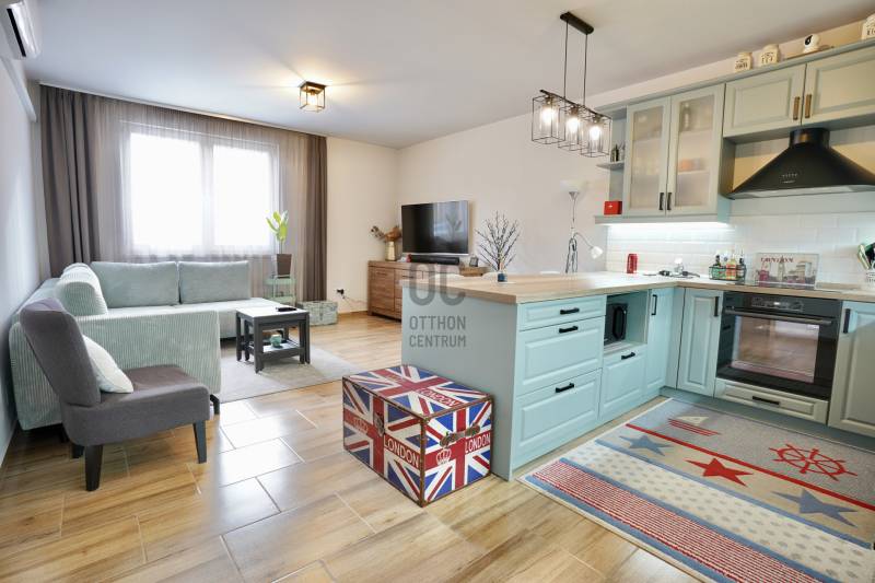 Modern, újszerű lakás Kispest kertvárosában – saját beállóval, elektromos autó töltési lehetőséggel.Budapest XIX. kerületében, Kispest kertvárosi részének csendes, rendezett utcájában, egy 2022-ben épült, mindössze 6 lakásos modern társasházban eladó egy 78,43m²-es, kiváló állapotú, lakás.Az ingatlan ideális választás családoknak vagy azoknak, akik nyugodt környezetben, mégis jó infrastruktúra mellett keresnek modern otthont.A lakás elosztása kifejezetten praktikus: tágas, világos amerikai konyhás nappali, 3 külön nyíló hálószoba, valamint 2 fürdőszoba WC-vel (egy kádas és egy zuhanyzós).A kényelmet és az alacsony fenntartási költségeket padlófűtés, minden helyiségben hűtő-fűtő klíma, valamint korszerű műszaki tartalom biztosítja.A biztonságról riasztórendszer és videós kaputelefon gondoskodik.Főbb extrák:elektromos alumínium redőnyökszúnyoghálókcsendes belső kert használatamagasföldszinti elhelyezkedéselektromos autó töltési lehetőségA lakáshoz saját udvari gépkocsibeálló tartozik, melynek megvásárlása kötelező, 3,9 M Ft értékben.További, külön megvásárolható lehetőségek: 10 m²-es tároló, önálló helyrajzi számmalbruttó 86 m²-es zárt teremgarázs, szintén külön helyrajzi számon ennek ára 39,9M.-FtEz az ingatlan ritka lehetőség a környéken: modern, újszerű, kis lakásszámú társasházban, kiváló elosztással és extra felszereltséggel.Közelében minden megtalálható, ami fontos a hétköznapokban, tömegközlekedése is kiváló.Amennyiben kérdése lenne, vagy szeretné megtekinteni személyesen is, kérem hívjon bizalommal, várom.Teljeskörű pénzügyi és jogi háttér-szolgáltatással várom kedves ügyfeleimet.