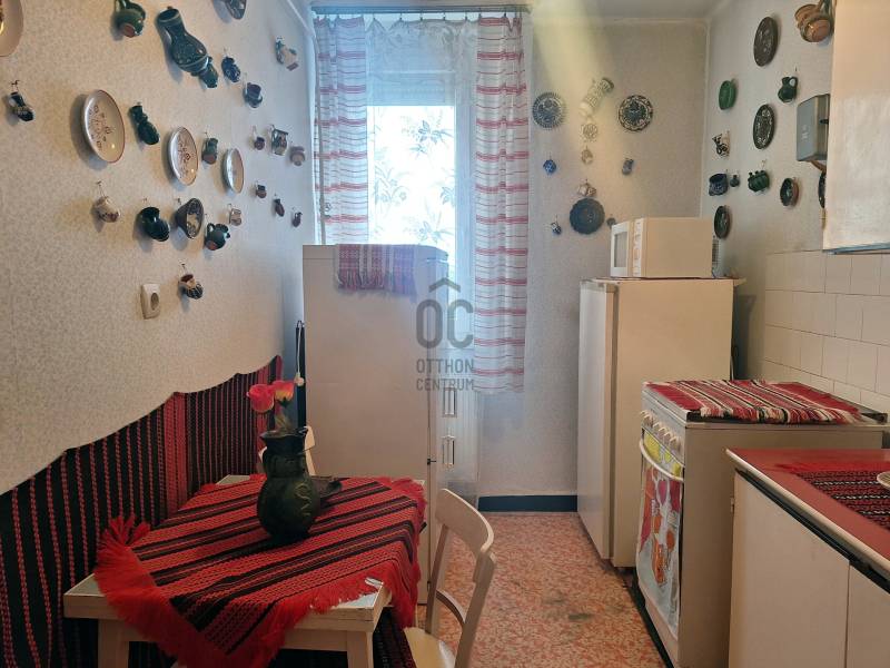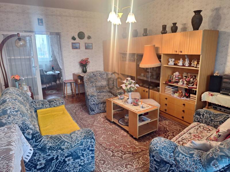 Eladó Tapolca Nyugati városrészében egy 2 szobás, 4. emeleti tégla lakás, rendezett tulajdoni viszonyokkal!Az ingatlanról:Alapterület: 55 m2Helyiségek: Előszoba, Konyha, Kamra, 2 Szoba, Fürdő + WC, ErkélyÉpítési mód: TéglaFűtés: Távfűtés, egyedi mérés nélkülKözművek: Víz, Villany, Csatorna bevezetve, Gáz nincsNyílászárók: részben műanyag, részben faÁllapot: Átlagos állapotúEmelet: 4. emelet (zárószint)Közös költség: 12500 FtTovábbi információ:Az ingatlan rendezett, zárt lépcsőházas társasházban van, csendes környezetben.Tartozik hozzá egy közös tároló, melyet 3 lakás tulajdonosai használnak közösen.Az ingatlan tehermentes.Az épület külső állapota jó, 2 évvel ezelőtt a tető megújult, víz szigetelés megtörtént.Amennyiben felkeltettem érdeklődését, keressen bizalommal!