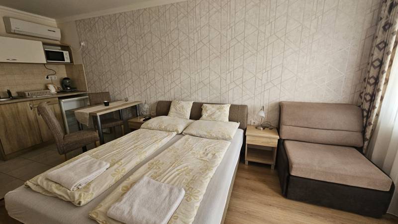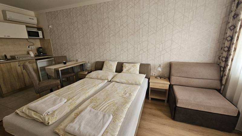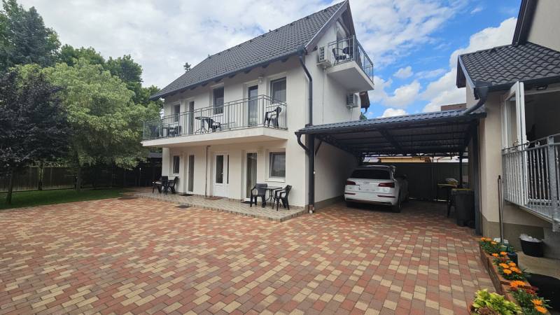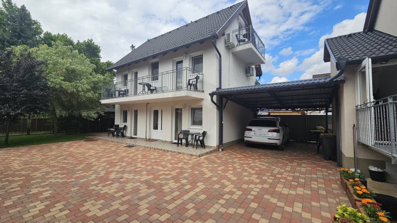 EXKLUZÍV BEFEKTETÉSI LEHETŐSÉG HAJDÚSZOBOSZLÓ KÖZPONTJÁBAN - LUXUS SZÁLLÁSKOMPLEXUM STABIL HOZAMMAL, TELJES FELSZERELTSÉGGEL!!!! A magyar turizmus egyik gyöngyszeme, Hajdúszoboszló, Európa-szerte ismert és elismert fürdőváros, ahol a gyógyturizmus, az élményfürdők és a folyamatosan növekvő belföldi-külföldi vendégforgalom találkozik. A város szívében, a kiemelt presztízsű Bánomkerti úton kínálunk eladásra egy teljes mértékben működő, kiváló állapotú, többfunkciós vendéglátóingatlant, amely tökéletes választás lehet üzleti befektetők, szállásadó vállalkozások vagy akár privát rezidenciát kereső vásárlók számára.Lokáció: A város legértékesebb övezetébenAz ingatlan elhelyezkedése páratlan: Hajdúszoboszló központjában, mégis csendes, nyugodt környezetben található. Néhány perc sétával elérhető a híres Mátyás király sétány, az Aqua-Palace élményfürdő mindössze 500méter távolságra, a Gyógyfürdő, valamint számos étterem, üzlet és turisztikai attrakció. A város az év minden szakaszában vonzza a látogatókat, ami egész éves telítettséget biztosít az itt működő szálláshelyek számára.Az ingatlan: prémium kialakítás, két épület, bővítési potenciállal1. Főépület (több mint 400 m²) – panzió, tulajdonosi lakrész, tetőterasz, szuterén apartmanJelenlegi funkció: panzió és hostel, vendégkörrel és működési múlttal9 különálló apartman, mindegyikben saját konyha és zuhanyzós fürdőszoba, ízlésesen bútorozott, azonnal kiadható állapotbanTulajdonosi lakrész: kb. 100 m²-es, 2 szobával, amerikai konyhás nappalival, kamrával, fürdőszobával (kád és zuhany is), külön WC-velA lakrész 3 különálló apartmanná alakítható, jelentősen növelve az ingatlan kihasználtságát és hozamát36 m²-es terasz és 12 m²-es erkély a vendégek pihenéséhezSzuterén szint: 45 m²-es különálló lakrész szaunával, saját konyhával és fürdőszobával – a főépületből és az udvarról is megközelíthetőA tetőn napelemrendszer (8 kW) segíti a költséghatékony működést2. Melléképület (3 szint) – vendégház, 5 apartmannalÖsszesen 5 apartman, mindegyikben külön konyha és fürdőszobaFöldszint és első emelet: 2-2 apartman, a tetőtérben 1 különálló egységAz emeleti apartmanokhoz tágas erkélyek tartoznak, vendégélmény szempontjából különösen értékesekKözös étkezőkonyha biztosítja a hosszabb tartózkodás kényelmétMűszaki tartalom és kényelmi extrákPadlófűtés a tulajdonosi lakásban, minden épületrészben modern gázkazános fűtés puffertartállyalKlímarendszer: minden apartmanban (kivéve a szuterént) hűtő-fűtő klíma gondoskodik a komfortos hőmérsékletrőlModern nyílászárók, mindenhol szúnyoghálóvalKamerarendszer az ingatlan teljes biztonságáért24 db Luxor Solar 330W napelem, Fronius inverterrel (8 kW) – akár teljes áramellátás biztosítottTérkövezett udvar, több beálló autóknak, fedett gépkocsi beállóAutomata öntözőrendszer, parkosított kertFedett udvari nyári konyha, bográcsozóhely – 12–20 fős társaságokat is kényelmesen kiszolgálEgyedi tervezésű tetőterasz – kiváló panoráma, prémium vendégélményÜzleti potenciál és megtérülésAz ingatlan egész évben üzemel, nem csupán szezonális működésű, így folyamatos bevételt biztosítJelenlegi kihasználtság alapján a megtérülési idő kb. 10 év, azonban a bővítési lehetőségek révén ez jelentősen rövidíthetőBejáratott vendégkör, ismert és kedvelt szálláshely a régióbanAz ingatlan tehermentes, jogilag rendezett, azonnal birtokba vehetőTeljes vendéglátáshoz szükséges felszereléssel együtt eladó – semmilyen további beruházást nem igényelKinek ajánljuk?Szállásadással foglalkozó cégeknek, akik rögtön működő rendszert keresnekMagánbefektetőknek, akik passzív jövedelmet biztosító, stabil hozamú ingatlant keresnekTársaságoknak, orvosi központoknak, tréningközpontnak, akik több lakóegységből álló komplexumot keresnekOlyan vásárlóknak, akik egy élhető lakóteret szeretnének működő üzleti háttérrel kombinálniLépjen a siker útjára Hajdúszoboszlón!Ez az ingatlan nem csupán egy panzió vagy vendégház, hanem egy kulcsrakész, jövedelmező vállalkozás a régió egyik legfrekventáltabb helyszínén. Ne hagyja ki ezt a különleges lehetőséget!További információért, alaprajzért vagy időpont egyeztetésért kérem, vegye fel velünk a kapcsolatot!