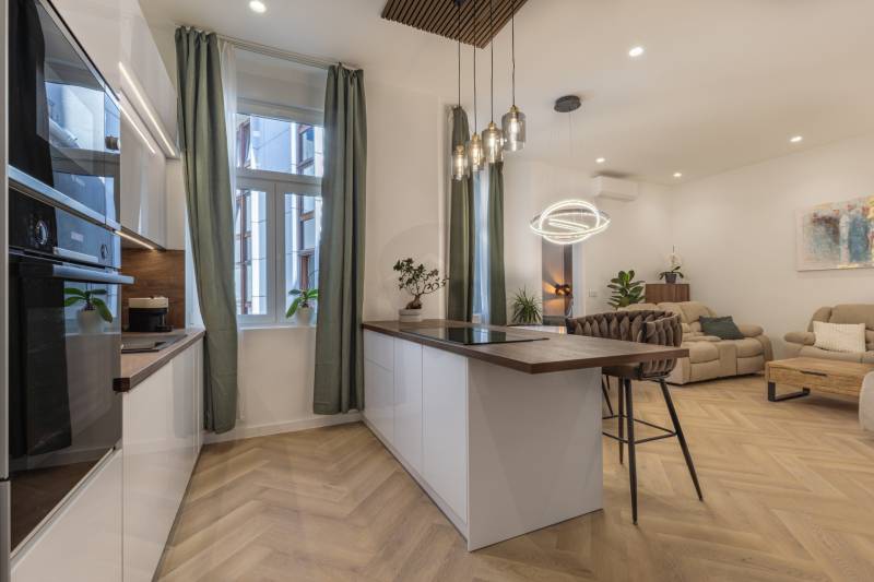 Kortárs elegancia a Belváros legjobb részén.A Papnövelde utca egyedi hangulatát idéző, 3. emeleti, 91 m²-es lakás teljes körű, luxus szintű felújításon esett át. A három külön nyíló szoba, a két design-fürdőszoba és a modern konyha-nappali egysége prémium életteret kínál.A minőségi anyaghasználat, a természetes fény és a kifinomult belsőépítészeti megoldások teszik igazán különlegessé.A Duna, a Váci utca és a Bazilika néhány perc sétára elérhetők – egy belvárosi lakás, amely stílusban és minőségben is kiemelkedik.
