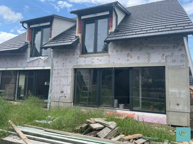 Bp. 3.kerület, Csillaghegyen, kifejezetten csendes utcában, kiváló közlekedésnél, Csillaghegy Duna felőli oldalán ,csendes családi házas övezetben eladó egy nappali-amerikai konyhás, saját, szeparált kerttel rendelkező nappali + 3 szobás ( a garázs átalakítható egy 4. szobává) , igényes kialakítású ikerfél, 20 m2-es terasszal garázzsal.A kisforgalmú, kertvárosi hangulatú utca infrastruktúrája kiváló. A közelben található a HÉV és a BKK. buszok megállói. A környéken számos bölcsőde, iskola, óvoda ,és bevásárlási lehetőség található.A Duna part és a Római part közelsége ,számos kikapcsolódási ,és sportolási lehetőséget kínál.A külön bejárattal rendelkező kert, és épületrészek egymástól szinte teljesen szeparáltak.A nappalihoz 24m2-es terasz, és külön kertrész kapcsolódik.A házhoz tartozik garázs, amely igény estén plusz szobává alakítható.Ezen kívül a ház mellett, több autó részére van beállási lehetősége is.A ház kívülről a színezésen kívül készen van. Belső munkák folynak jelenleg.Belső burkolatok, és ajtók még választhatóak, ár- értékhatárig.A lakás kb. szeptemberben költözhető.LEÍRÁS:Nappali +3szoba, igény szerint +1 szoba a garázsból kialakítható2 fürdőszobaParkolás: garázs, kerti beálló.Saját telekrész:313,5M2.MŰSZAKI LEÍRÁS:-30 cm-es falazat 10 cm-es grafitos hőszigeteléssel-10 cm-es válaszfalak-fűtés: hőszivattyú padlófűtéssel-tetőn 3 X10 cm-es kőzetgyapot hőszigetelés-3 rétegű üvegezésű, antracit szürke nyílászárók-redőnytokkal elektromos redőny előkészítése-acél bejárati ajtó-geberit wc-k-klíma alapszerelés-teljes 24 zónás riasztórendszer (nyílászárókon nyitásérzékelőkkel)-1 X32 Amper áram + H tarifa-opcionálisan Fancoil fűtésrendszer-elektromos garázskapu, elektromos kertkapu-kaputelefon-lemosható beltéri falfesték fehér alapszínben-napelem előkészítésA ház kívülről a színezésen kívül készen van. Belső munkák folynak jelenleg.Belső burkolatok és ajtók még választhatóak, ár- értékhatárig.Szeptemberi átadás.VÁROM MEGTISZTELŐ HÍVÁSÁT, AKÁR HÉTVÉGÉN IS.