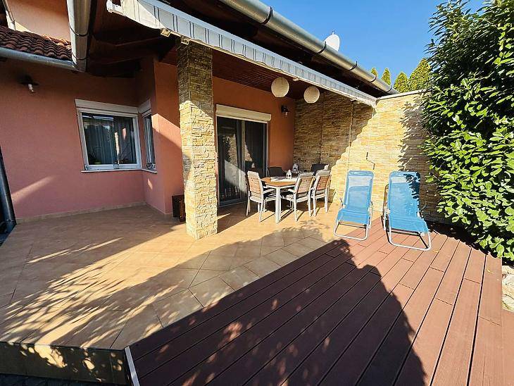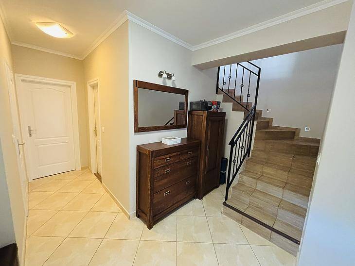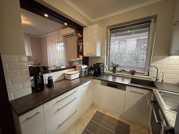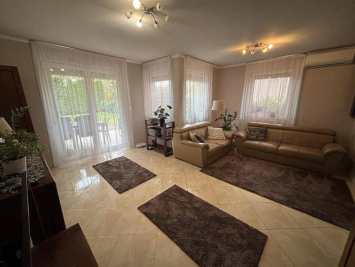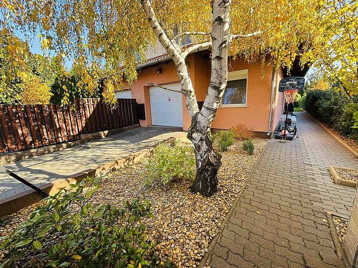Kertvárosi, csendes, nyugodt utcában, saját garázzsal, nagy terasszal, kertel rendelkező jó állapotú 144nm-es ikerház fél eladó Dunakeszi közkedvelt részén a Tóvárosban!A ház szerkezetileg kifogásoltalan állapotban van, 30-as Porotherm téglából épült falak, 5 cm-es külső hőszigetelés, jó állapotú cserép.Az alsó szinten amerikai konyhás nappali, étkező, konyha, zuhanyozós fürdőszoba, 16nm-es fűthető, elektromos garázs, vendégszoba, előszoba és egy 25 nm terasz található.Az emeleten 3 nagy szoba, közlekedő, illetve fürdőszoba található.A fűtésről western kondenzációs gázkazán gondoskodik, padlófűtés, illetve radiátoros hőleadással. A duplaműanyag nyílászárók redőnnyel, illetve szúnyoghálóval lettek ellátva. A hűtésről Mitsubishi hűtő-fűtő klímák gondoskodnak a földszinten és az emelten egyaránt.Szinte minden bútor ide lett tervezve, és beépített. A konyha gépesítéssel együtt az ár részét képezi.A parkolás a fűthető garázson kívül, a ház előtt 2 felszíni beálló, az elektromos kapuval ellátott telken belül 1 felszíni beállóval megoldott.A házban riasztórendszer, a 400nm-es kertben pedig 4 körös öntözőrendszer került kialakításra.Az ingatlanban folyamatos felújítások történek az az építés óta. Az új tulajdonos számára továbbá kialakítható a fenti fürdőszobában buborékos mászáskád, a kiállás ki lett építve hozzá. Kérdésével, illetve megtekintése szándékával keresse irodánkat, amennyiben hitelre lenne szüksége, profi hitelközvetítő kollegáink díjmentesen állnak rendelkezésükre.