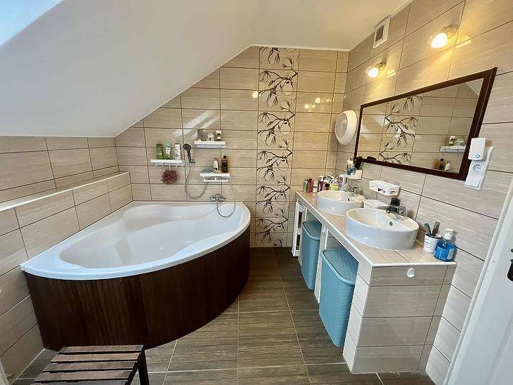 XV. KERÜLETBEN, RÁKOSPALOTÁN, ELADÓ 170 NM-ES, 2 SZINTES, TÁGAS, 5 SZOBÁS, 2 FÜRDŐSZOBÁS ÖNÁLLÓ CSALÁDI HÁZ FEDETT TERASSZAL, ERKÉLLYEL, GARÁZZSAL 477 NM TELKEN.AZ ÉPÜLET JELLEMZŐI:2016-ban teljeskörű felújításon esett át az épület: kicserélték a teljes elektromos hálózatot, burkolatokat, szanitereket, lefolyórendszert, korszerűsítették a fűtésrendszert, valamint elektromos kapu és garázsajtó lett felszerelve és 4 db hűtő-fűtő klíma.A teljes földszinten rendszeresen tisztított padlófűtés van lerakva, az épület fűtéséről cirkó kazán gondoskodik. Az emeleten plusz szivattyúval működtethető, lapradiátoros fűtőrendszer lett kialakítva hozzá, hogy a távolabb eső szobák is megfelelően fűthetőek legyenek. 2017-ben műanyag, hőszigetelt ablakokat építettek be, a fakeretes tetőablakokban az üvegek lettek kicserélve. Az épület 10 cm dryvit szigetelést kapott. A kertben esővíz tároló és locsolórendszer van kialakítva. A világítással ellátott kertben egy szerszámos ház is helyet kapott, a fedett terasz alatt pedig egy kő sütögető van felépítve.A HÁZ ELRENDEZÉSE:Földszint:- előszoba- vendégszoba- nappali- étkezős konyha- fürdőszobaEmelet:- közlekedő- 3 szoba- fürdőszoba káddal és zuhanyzóval- gardróbPARKOLÁS:Garázs és kocsibeálló az udvarbanKÖZLEKEDÉS:Pár percre a 96, 296, 296A, 124, 225, 231, 231B busz, 973, 996 éjszakai járat, valamint regionális buszmegálló.IRÁNYÁR: 157 M FTFINANSZÍROZÁS:Az ingatlan banki finanszírozással is megvásárolható, melyben irodánk ingyenes tanácsadással áll rendelkezésükre!VEVŐINK RÉSZÉRE A KÖZVETÍTÉS DÍJTALAN !!A hirdetésben szereplő adatok tájékoztatás jellegűek!