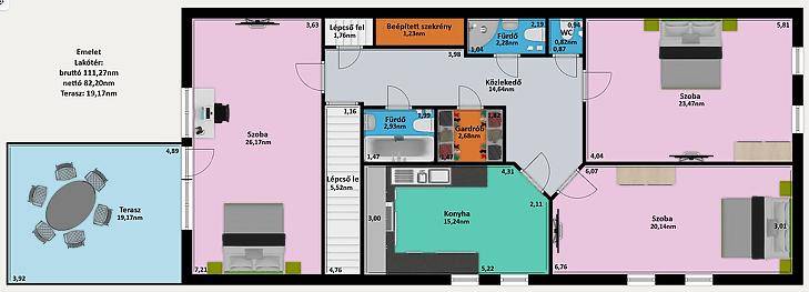 Lipótmezőn 2015-ben épült 2 lakásos házban eladásra kínálunk egy bruttó 206nm-es (nettó 127nm) lakást. Az ingatlan 2 lakrészből áll:- Tetőtérben bruttó 106nm-es (nettó 77nm) 3 szobás, étkezőkonyhás lakás, melyhez tartozik egy 19nm-es terasz kilátással az Apáthy-sziklára- Félszuterénben 100nm-es ablakos, nappali, 2 hálós lakás, melyet közös lépcsőházból közelíthetünk meg. Az ingatlan minden ablaka hőszigetelt, a homlokzatra 10cm szigetelés került. Fűtése gázcirkó padlófűtéssel. A hűtésről pedig helyiségenként split klíma gondoskodik. A zárt udvarban kettő autó számára térkövezett autóbeállási lehetőség biztosított automata kapun keresztül. Amennyiben ennél nagyobb területre van szükség, úgy lehetőség van a ház másik lakásának a megvásárlására is, így összesen 463nm-es családi házat kapunk 540nm-es teleken.
