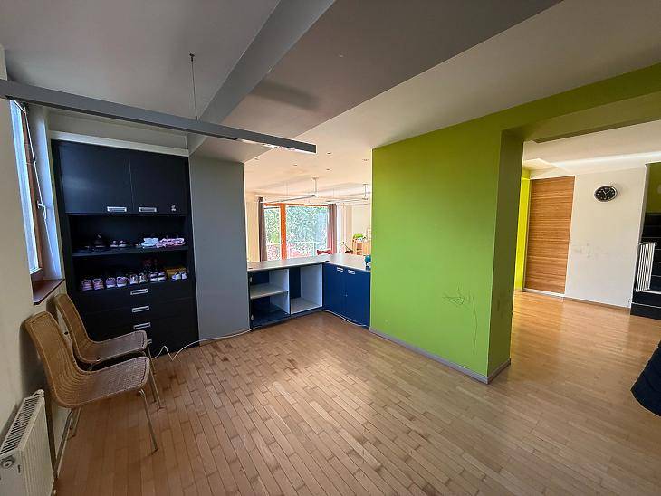 Kizárólag Irodánk kínálatában!Eladásra kínálunk egy csendes, jó állapotú, nettó 159 nm-es + 15 nm-es teraszos, belső kétszintes, világos, panorámás lakást Németvölgy frekventált részén, a Fürj utcában.A szigetelt ház 2 lakásos, 3 szintes, amelyből az eladásra kínált lakás a felső két szinten helyezkedik el. A lakás 6 szobával rendelkezik, amelyből az első emeleten található egy nappali + 2 szoba, a többi szoba a második emeleten helyezkedik el.Az első emeleten található egy 4 nm-es és egy 11 nm-es terasz (utóbbi bővíthető igény szerint), valamint a 2. emeleten két franciaerkély is.Belmagassága 266 cm.A lakás külön bejáraton át megközelíthető a kertből, illetve a garázsból is.Tartozik hozzá egy kétbeállásos garázs, mely 16 nm, valamint egy udvari beálló. Ezeket kötelező megvásárolni, értékük összesen 20M Ft.A ház kertje közös használatú.Elhelyezkedése kiváló: a közelben bevásárlási lehetőségek, iskolák, óvodák, parkok és tömegközlekedési megállók találhatók. A környék ideális mindazoknak, akik a város közelségét, de a zöld, csendes környezetet részesítik előnyben.Kérdés esetén keressen minket bizalommal!Irodánk ingyenes hiteltanácsadással áll ügyfeleink rendelkezésére.Vevőink számára a közvetítés díjmentes.A hirdetésben szereplő adatok tájékoztató jellegűek.