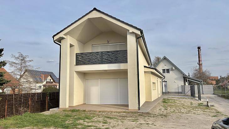 Dunakeszi egyik legcsendesebb, kertvárosi utcájában eladó egy 155 m²-es, ÚJ ÉPÍTÉSŰ, kétszintes, nappali + 3 szobás, önálló családi ház!Az ingatlan átmenő forgalomtól mentes környezetben helyezkedik el, ahol a modern építészet és a praktikus, kényelmes otthonérzet találkozik.Főbb jellemzők• Telek: 726 m²• Lakótér: 155 m², modern elosztással, két szinten• Helyiségek: nappali + 3 hálószoba, 2 fürdőszoba, mosókonyha, gardrób• Saját garázs az épületben• Fedett terasz a földszinten és az emeleten isMűszaki tartalom• Korszerű, hőszivattyús hűtő-fűtő rendszer• Padlófűtés és mennyezethűtés a maximális komfortért• Kiegészítő klímaberendezés• Prémium minőségű nyílászárók• Modern, energiahatékony szigetelés• Kulcsrakész átadás, beépített konyhabútorral