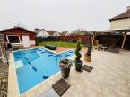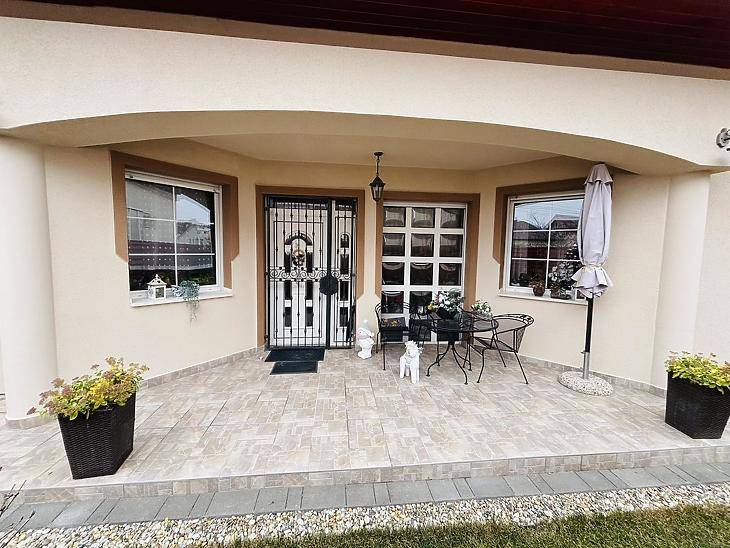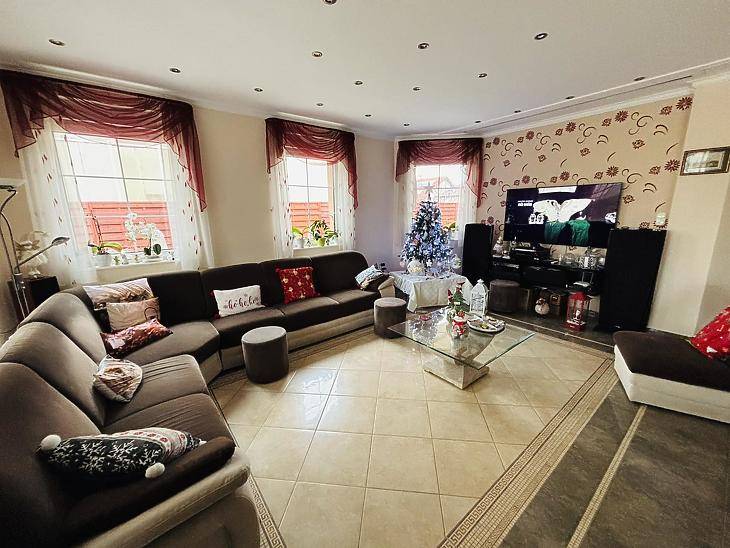Eladásra kínálunk Fót közkedvelt és könnyen megközelíthető részén egy kivételes adottságokkal rendelkező, 320 m²-es, két szintes luxus családi házat, amelyhez egy igényesen kialakított, 622 m²-es telek tartozik.Az ingatlan 38-as porotherm téglából épült, modern dryvit szigeteléssel, prémium minőségű, hőszigetelt műanyag nyílászárókkal felszerelve, beépített redőnyökkel. A házba lépve egy tágas, 45 m²-es amerikai konyhás nappali fogad, amelyben a falba rejtett házimozi rendszer és leereszthető projektorvászon teremt igazi mozis élményt. A földszinten két kényelmes hálószoba, fürdőszoba, WC, mosókonyha, előszoba és egy fűthető garázs kapott helyet.Az emeleten egy impozáns nappali várja az új tulajdonost – szükség esetén konyha kialakítására is adott a lehetőség –, emellett négy hálószoba, egy újabb fürdő, WC és egy praktikus gardróbhelyiség biztosítja a komfortot.A ház fűtéséről korszerű kondenzációs kazán, padlófűtés és hűtő-fűtő klímák gondoskodnak, minden helyiségben külön szabályozható hőmérséklettel. A belső tereket Versace burkolatok, egyedi gépészet, valamint központi porszívórendszer teszi igazán elegánssá.A parkolás teljes mértékben megoldott: az 50 m²-es, fedett viacolor beállón akár három autó is kényelmesen elfér, a garázs elektromos, 8 méter széles szekcionált kapuval felszerelt, a ház előtt pedig további két parkolóhely áll rendelkezésre. A napelem és hőszivattyú kiépítése előkészítve, a H-tarifa igénylése folyamatban, a puffertartály már beépítésre került.A hátsó kert igazi privát wellness- és pihenőzóna. Az 50 m²-es fedett teraszról egy 7,5 × 3,5 méteres, 1,6 m mély, kiváló felszereltségű fűthető medencéhez jutunk, mely ellenáramoltatóval, automata vegyszeradagolóval, vízlágyítóval, valamint nyak- és hátmasszírozóval is rendelkezik. A gépészetet egy külön, 25 m²-es melléképület rejti, ahol egy szauna is kialakításra került A kertben ezen kívül fedett kerti sütögető is szolgálja a maximális kikapcsolódást.A telek rendezett, vakondhálóval ellátott, gyepszőnyeggel borított, automata öntözőrendszerrel és fúrt kúttal kiegészítve – minden adott a gondtalan kertápoláshoz.Megtekintés miatt kérem, vegye fel a kapcsolatot irodánkkal!