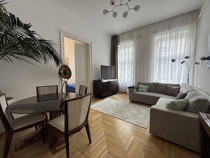 Eladó Budapest VI. kerületében, az Ó utcában egy 73 nm-es, 1. emeleti, felújított nagypolgári lakás.Az ingatlan 2 tágas szobával rendelkezik, amelyek külön nyílóak, ugyanakkor egymásból is megközelíthetők, így ideális elrendezést biztosítanak akár otthonnak, akár befektetésnek. A lakás duplakomfortos, két modern fürdőszobával felszerelt, ami ritkaság ebben a kategóriában. A felújítás során megőrizték a nagypolgári hangulatot, miközben korszerű, igényes műszaki és esztétikai megoldások kerültek beépítésre. Világos, utcai fekvésű, nagy belmagasságú terek jellemzik.Az Ó utca a VI. kerület egyik kedvelt, központi utcája, kiváló közlekedéssel és infrastruktúrával. Néhány perc sétára található az Andrássy út, az Oktogon és a Nyugati pályaudvar, számos tömegközlekedési lehetőséggel (M1 metró, villamosok, buszok). A környéken éttermek, kávézók, üzletek, kulturális és szórakozási lehetőségek teszik igazán vonzóvá a mindennapokat.Az adatok tájékoztató jellegűek!