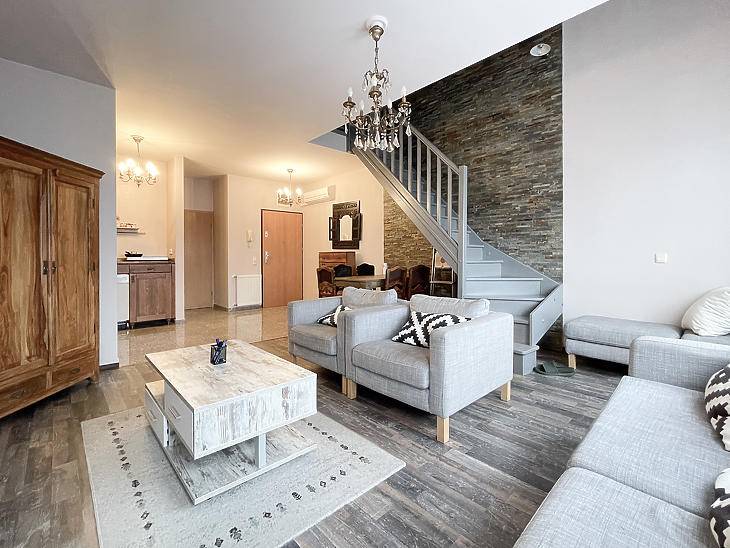 A 2014-ben megújult, parkosított Teleki László téren, egy 2000 után épült, liftes társasház negyedik emeletén (legfelső szintjén) eladó egy kétszintes, jó állapotú lakás. Az alsó szinten tágas, utcai nézetű, amerikai konyhás jellegű nappali található délkeleti tájolással, valamint egy kamra és egy fürdőszoba. A felső szinten előtér, gardróbhelyiség, hálószoba és egy másik fürdőszoba kapott helyet.A lakás világos, jól átgondolt elrendezésű, az elmúlt években elvégezték a szükséges esztétikai felújításokat. A fűtés házközponti, az épület rendezett, karbantartott, lifttel ellátott.Modern, kényelmes lakás egy rendezett lakóközösségű társasházban, közvetlen zöld környezetben, mégis jó közlekedéssel és szolgáltatásokkal a közelben. A lakás jelenleg bérbeadott, a bérleti jogviszony részleteiről további tájékoztatás kérhető. Az adatok tájékoztató jellegűek. Vevőink számára a közvetítés díjtalan.