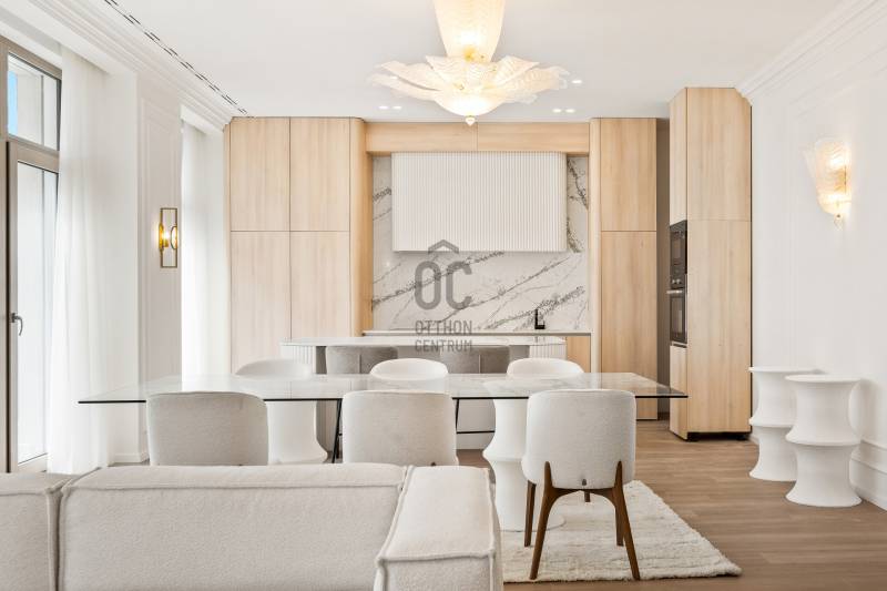 Eladó Budapest V. kerületében, a Március 15. téren, egy újépítésű, exkluzív lakás, amely minden igényt kielégít!Az ingatlan bruttó 211 m²-es alapterületével és jól átgondolt elrendezésével tökéletes választás azok számára, akik egy különleges, prémium otthont keresnek.Főbb jellemzők:2 hálószoba2 fürdőszoba1 tágas nappaliKülön konyha, étkező és kamraNagy belmagasság, napfényes, világos terekLuxus és kényelem egyedi kivitelezésbenA lakáshoz tartozik egy tágas, panorámás terasz, amely lélegzetelállító kilátást nyújt Budapest legszebb részeire. A déli tájolás biztosítja, hogy a lakás egész nap fényárban ússzon, miközben modern belső kialakítása a funkcionalitást és az eleganciát ötvözi.Ez a lakás ideális választás azok számára, akik:Központi, mégis exkluzív lokációt keresnek.Egyedi, újépítésű ingatlanba költöznének.Hosszú távon is értékálló befektetést szeretnének.Elhelyezkedés:Az épület kivételes lokációval rendelkezik, az Erzsébet híd közvetlen közelében. Az ingatlan nem csupán elegáns otthonként, hanem hosszú távon is értékálló befektetésként szolgál.Ez az ingatlan tökéletes választás azok számára, akik Budapest szívében, luxuskörnyezetben keresnek exkluzív otthont vagy befektetési lehetőséget.Amennyiben egy prémium kategóriás, csodálatos panorámával rendelkező ingatlanra vágyik, ne hagyja ki ezt a lehetőséget!Egyedi igényekre szabott lakáshitelekkel állunk rendelkezésére. Bankfüggetlen hitelcentrumunk az országban elérhető összes bank és hitelintézet ajánlatát versenyezteti az Ön számára díjmentesen. Munkatársaink nagy szakmai tapasztalattal várják Önt az előre egyeztetett időpontban akár a normál munkaidő után is.Bővebb információért és a megtekintéssel kapcsolatban hívjon bizalommal!Projekt bemutatásaEladó az V. kerületben egy páratlan lehetőség: ÖRÖKPANORÁMÁS, 1917 m²-es, önálló épület az Erzsébet híd lábánál, 7 GARÁZSHELYLEL!Az épületben 6 exkluzív, egyedi kialakítású, örökpanorámás lakás található, melyek lenyűgöző kilátást nyújtanak a Budai-hegyekre és a Citadellára. Minden lakás külön szinten helyezkedik el, saját tágas, panorámás terasszal – kivéve a lélegzetelállító Penthouse lakást, amely kétszintes kialakítással büszkélkedhet.Főbb jellemzők:Lakások mérete: 207–287 m²Tájolás: Déli fekvés, világos terekBelsőépítészet: Nagy belmagasság, modern eleganciaPenthouse különlegessége: Az épület két legfelső szintjét foglalja el, 3 hálószobás elrendezéssel, óriási üvegfelületekkel és két hatalmas, panorámás terasszal.Különleges kényelmi szolgáltatások:Terasz: Minden lakáshoz tartozik saját, nagy méretű teraszTároló: Pinceszinten privát tárolók biztosítottakGarázs: Az épület földszintjén 7 gépkocsi számára kialakított, modern emelőszerkezetes garázshelyek találhatók.További helyiségek: Elegáns lobby és üzlettér a földszinten.Elhelyezkedés:Az épület kivételes lokációval rendelkezik, az Erzsébet híd közvetlen közelében. Az ingatlan nem csupán elegáns otthonként, hanem hosszú távon is értékálló befektetésként szolgál.Ez az ingatlan tökéletes választás azok számára, akik Budapest szívében, luxuskörnyezetben keresnek exkluzív otthont vagy befektetési lehetőséget.Amennyiben egy prémium kategóriás, csodálatos panorámával rendelkező ingatlanra vágyik, ne hagyja ki ezt a lehetőséget!Egyedi igényekre szabott lakáshitelekkel állunk rendelkezésére. Bankfüggetlen hitelcentrumunk az országban elérhető összes bank és hitelintézet ajánlatát versenyezteti az Ön számára díjmentesen. Munkatársaink nagy szakmai tapasztalattal várják Önt az előre egyeztetett időpontban akár a normál munkaidő után is.Bővebb információért és a megtekintéssel kapcsolatban hívjon bizalommal!