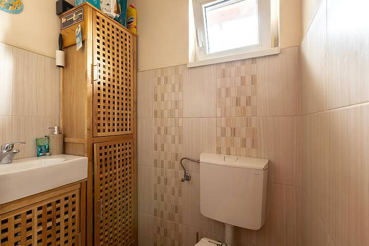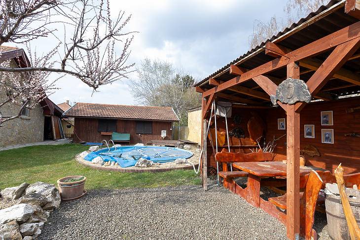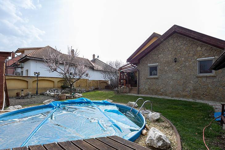A 2000-ben épült, 150 négyzetméteres családi ház az 549 négyzetméteres telek első felében helyezkedik el, így helyet hagyva a hátul kiépítésre került kerti grillnek, beépített medencének, és egy 30 négyzetméteres melléképületnek, ahol egy szauna garantálja a maradéktalan kikapcsolódást.Az utcafront felőli 2 bejáratnak hála, az ingatlan tökéletesen alkalmas akár egy otthoni vállalkozás üzemeltetésére. Ehhez adott egy 30 négyzetméteres, 2 helységből álló, teljesen elszeparálható rész. Több generáció számára is ideális választás, még az se okoz gondot, ha több autó van a háznál. A 10 négyzetméteres tároló előtt helyet kapott egy 2 férőhelyes fedett garázs, valamint szabadtéri parkolóhely is kialakításra került további járművek számára.Az ingatlan banki finanszírozással is megvásárolható, melyben irodánk ingyenes tanácsadással áll rendelkezésére, hogy a jelenleg piacon lévő hitelkonstrukciók közül a legkedvezőbbet sikerüljön kiválasztani.További kérdés, valamint megtekintési szándék esetén, keresse irodánkat bizalommal!
