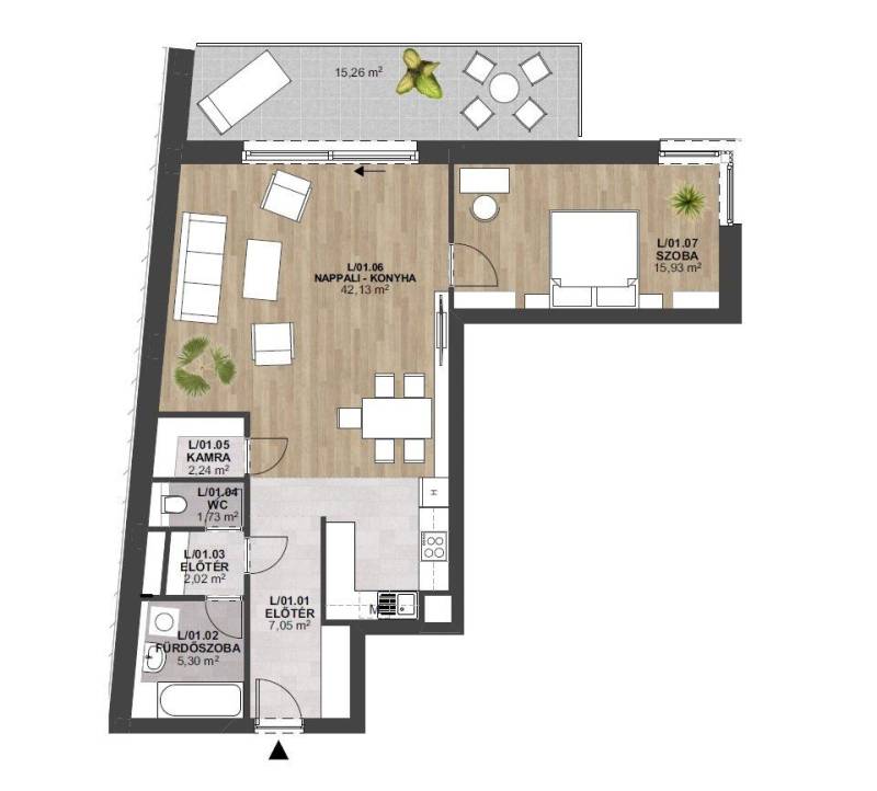ÚJÉPÍTÉSŰ PRÉMIUM LAKÁSOK KÖZÜL VÁLASZTHAT MISKOLC BELVÁROSÁBAN!Miskolc belvárosának frekventált részén az Elena lakóparkban - egy modern, mélygarázs + 5 szintes társasházban kínálunk eladásra újépítésű lakásokat, különböző alapterületekkel és átgondolt elrendezéssel. A kínálatban korszerű, stílusos erkélyes lakás, stúdió lakás egyaránt elérhető, valamint exkluzív penthouse lakás, mely magas szintű komfortot és különleges életérzést biztosít.Hirdetésben szereplő otthon 76,41 nm alapterületű, melyhez 15,26 nm terasz tartozik, 1. emeleten található és déli tájolású. Nappali-konyha-étkezőhöz 1 külön nyíló szoba tartozik. Részletes helyiség lista és elrendezése az alaprajzon megtekinthető.Eladási ár: 113.912.295 FtEz az elosztású lakás az épület több szintjén is választható, különböző méretű terasszal és tájolással. Az egyes variációk között az alapterületnek és az emeletnek köszönhetően eltérés mutatkozik az értékesítési árban. Épület paraméterei:- újépítésű, prémium minőségű társasház igényes műszaki tartalommal és modern megoldásokkal- mélygarázs + földszint + 4 emeletből áll az épület- földszinten 2db üzlethelyiség és tárolók kerülnek kialakításra - 4 emeleten 46 db lakás épül - mélygarázsban 37db teremgarázs, belső udvaron 9 db felszíni parkoló kap helyet- lakások alapterülete 39nm-120nm közötti, melyek legtöbbjeihez különböző méretű terasz tartozik- lakások eladási ára 56.000.000 Ft - 222.000.000 Ft között mozog- teremgarázs eladási ára 12.700.000 Ft, udvari parkolóhely eladási ára 6.350.000 Ft- kulcsrakész állapotban kerülnek átadásra a lakások, konyhaszekrény, beépített gépek és fürdőszobai mosdószekrény nélkül- minimális rezsivel, gazdaságosan fenntartható otthonok készülnek- műszakilag megfelel a közel nulla energiaigényű építésügyi előírásnak- korszerű gépészeti megoldásokkal épül padlófűtéssel és mennyezethűtési rendszerrel- 3 rétegű hőszigetelt nyílászárók elektromos redőnnyel felszereltek- lift, zárt belső udvar ezek mind-mind a lakók kényelmét szolgálják- ingatlan belső kialakítása a vevővel együttműködve történik az eladó által megjelölt időpontig- lakberendező által kiválasztott prémium minőségű anyagok kerülnek beépítésre Irodánkban minden részlet megtekinthető: tervrajz, műszaki leírás, szintrajz és egyéb dokumentumok. Időpont-egyeztetés után helyszíni bejárásra is van lehetőség. Jelenleg az ingatlan 73%-os készültségben van. Várható átadás: 2026. augusztus hóA belvárosi elhelyezkedésnek köszönhetően kitűnő infrastruktúrával rendelkezik. Kiváló közlekedés, üzletek, szolgáltatások, intézmények néhány percen belül elérhetők. Kérem hívjon a felmerült kérdésekkel, szívesen állok rendelkezésére! Vevőink részére szolgáltatásaink díjmentesek és teljes körűek, beleértve a bankfüggetlen hiteltanácsadást és ügyintézést is. Éljen a lehetőségeivel és vegye igénybe a vásárláshoz az Otthon Start - CSOK Plusz - fix kamatozású lakáshiteleket!IDEÁLIS VÁLASZTÁS SAJÁT OTTHONNAK VAGY BEFEKTETÉSNEK EGYARÁNT!MIK azonosító: 3971327