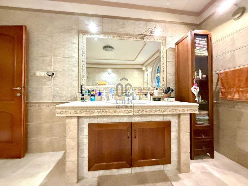 Dunakeszi egyik legkeresettebb, legszebb környezetében, a dunaparttól mindössze pár száz méterre, Révdűlőn kínálunk megvételre egy egyedileg tervezett, önálló luxus családi házat, amely kompromisszummentes minőséget és maximális kényelmet nyújt. 2002-ben, 38 cm-es Porotherm téglából épült, kiváló állapotú ingatlan 774 m²-es, parkosított telken helyezkedik el, rendezett, barátságos szomszédságban.Tágas, átgondolt terek – 3 szinten- Pince: 117 m² – teljesen közművesített, mosókonyhával és WC-vel,kialakítása ideális wellness részleg, fitnesz vagy hobbitér létrehozására.- Földszint: 164,47 m² + 30 m²-es, fűtött, kétállásos garázs, amely elektromos autók töltésére is alkalmas.- Tetőtér: 122,47 m², világos, jól hasznosítható terek.Az ingatlan dupla összkomfortos, a födémen 12 cm Therwoolin hőszigeteléssel, az egyedileg gyártott SOFATHERM hőszigetelő nyílászárók külső árnyékolóval felszereltek.Modern technológia – gyakorlatilag rezsimentes működés- 3×40 A elektromos kapacitás- 8 kW-os napelem rendszer – gyakorlatilag nincs villanyszámla- Hőszivattyús fűtés-hűtés-Központi porszívórendszer + robotporszívó (a konyhai lábazatból történő elszívással is)Prémium konyha és belső kialakításA tágas, exkluzív konyha minden igényt kielégít:- főzősziget gáz- és kerámialappal, valamint japán grilllel- hibátlan állapotú fekete gránit munkapult- magas minőségű, beépített gardróbok – a vételár részét képezikJelenleg 3 hálószoba áll rendelkezésre, de a nappali terek méretének köszönhetően további hálószobák is könnyedén kialakíthatók.Kert, biztonság, életérzésA gondosan parkosított kert:- automata öntözőrendszerrel- robotfűnyíróval- ásott kúttalA biztonságról kamerarendszer és távfelügyeletre kötött riasztó gondoskodik.A Duna közelsége, a környező parkok és a kiváló lakóközösség különleges, nyugodt életérzést biztosítanak.Ez az ingatlan azoknak szól, akik nem kompromisszumot, hanem életminőséget keresnek. Hívjon bizalommal hétvégén is, megtekintés rugalmasan egyeztethető.