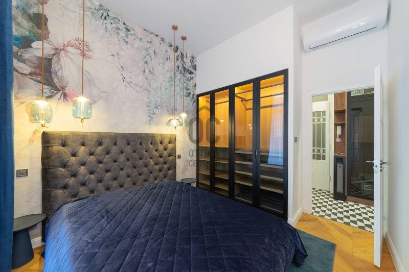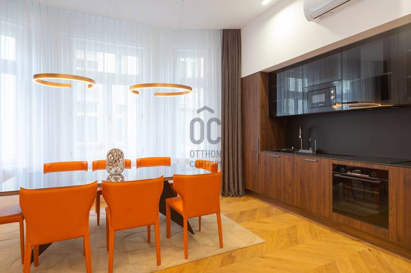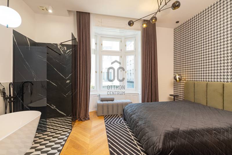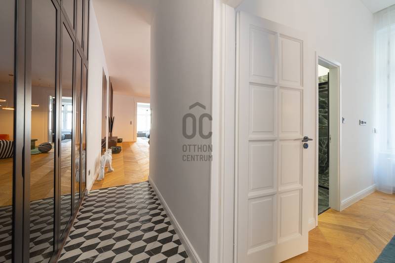 Az INT Interior Design Awards egy rangos, nemzetközi szintű szakmai elismerés, amely a kiemelkedő belsőépítészeti formatervezést, a térkompozíciók harmóniáját és az innovatív megoldásokat díjazza világszerte.A világhírű belsőépítészek díjazott munkái közé, egy magyar belsőépítész is keze munkája is bekerült az alábbi otthonnal.A lakás enteriőrje a modern luxust, a kozmopolita életérzést és az időtálló eleganciát ötvözi.AZ ÉPÜLETRŐLA lakás egy klasszikus, korabeli társasházban található, amely a 20. század közepén épült és ma is őrzi a belvárosi bérházakra jellemző karaktert. Az épület jellegzetes, nagypolgári arányokkal és méretarányokkal bír, így belső tereiben és külső megjelenésében egyaránt érezhető a történeti háttér és a városi elegancia.FŐBB JELLEMZŐK:- 93 m² alapterület, közel 50 m²-es nappali–konyha–étkező térrel- 2 külön nyíló hálószoba és 2 fürdőszoba- Több mint 3 méteres belmagasság- Kandalló, a nappali látványos központi eleme- Teljesen berendezett, azonnal költözhető / kiadható állapot- Belsőépítész által tervezett, egyedi design megoldások- Prémium burkolatok: chevron tölgyparketta, márványhatású nagylapok, exkluzív kerámiák- Egyedi, füstüveg frontos beépített szekrények az előszobában és hálószobákban- Díjnyertes bútorzat és gondosan válogatott designkiegészítők- Saroklakás, déli és keleti tájolással, kiváló természetes fényviszonyokkalA prémium minőségű, egyedi tervezésű bútorzat, designlámpák, burkolatok és kiegészítők összértéke megközelítőleg 24 millió forint, amely a vételár részét képezi. A berendezésben olyan ikonikus darabok is megtalálhatók, mint a Gaetano Pesce által tervezett Up 50 fotel, valamint neves gyártók termékei.A bútorzat és a teljes berendezés összértéke 24 MFT, ami a vételáron felül értendő és KÖTELEZŐEN MEGVÁSÁROLANDÓ.LOKÁCIÓ ÉS KÖZLEKEDÉSBudapest belvárosának szívében, az V. kerületben, díjnyertes belsőépítészeti koncepció alapján kialakított lakás. A környék a belvárosi életstílus minden előnyét kínálja:- prémium éttermek, kávézók, üzletek- kulturális intézmények, galériák- Duna-part, Váci utca és Deák tér néhány perc sétával elérhetőKözlekedés:- Ferenciek tere és Deák Ferenc tér 5–8 perc sétára- M1, M2, M3 metróvonalak gyors elérhetőséggel- Számos busz- és villamosjárat a közelben- Kiváló autós és kerékpáros megközelítésA lokáció ideális mind saját célra, mind befektetésként, rövid- vagy hosszútávú bérbeadásra.MŰSZAKI FELSZERELTSÉG- Teljes körű műszaki felújítás – minden gépészeti és elektromos rendszer, vezeték és csőhálózat új- Műszakilag is teljes mértékig felújított állapot, - Teljesen gépesített, egyedi tervezésű konyha prémium készülékekkel- Bordázott bútorfront, kompaktlemez munkapult, fekete kiegészítők- Magas minőségű klímaberendezés- Beépített riasztórendszer- Több ponton záródó biztonsági bejárati ajtó- Modern elektromos és gépészeti hálózat- Dupla mosdós, lebegő fürdőszobabútor- Füstüveg fallal határolt, nyitott fürdőtér a fő hálószobában- Egyedi világítási koncepció, hangulat- és funkcionális fényekkelA lakás minden részletében az ergonómia, a funkcionalitás és az esztétikum egysége érvényesül. A bútorok, beépített elemek és válaszfalak már a tervezési fázisban a maximális helykihasználás és komfort érdekében kerültek kialakításra.Felmerülő kérdéssel vagy megtekintéssel kapcsolatban, kérem egyeztessünk!Vevő ügyfeleink számára díjmentes, bankfüggetlen hiteltanácsadással biztosítjuk, hogy a számukra legkedvezőbb finanszírozási döntéseket hozhassák meg. Emellett opcionálisan igénybe vehető kiegészítő szolgáltatásaink – például ügyvédi közreműködés, energetikai tanúsítvány vagy villamos biztonsági felülvizsgálat – teljes körű szakmai támogatást nyújtanak az adásvétel minden egyes lépésénél.Az energetikai tanúsítvány készítése folyamatban van, amint rendelkezésre áll, úgy azzal a hirdetés frissítésre kerül.