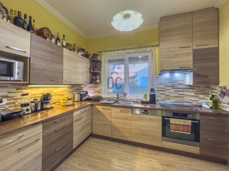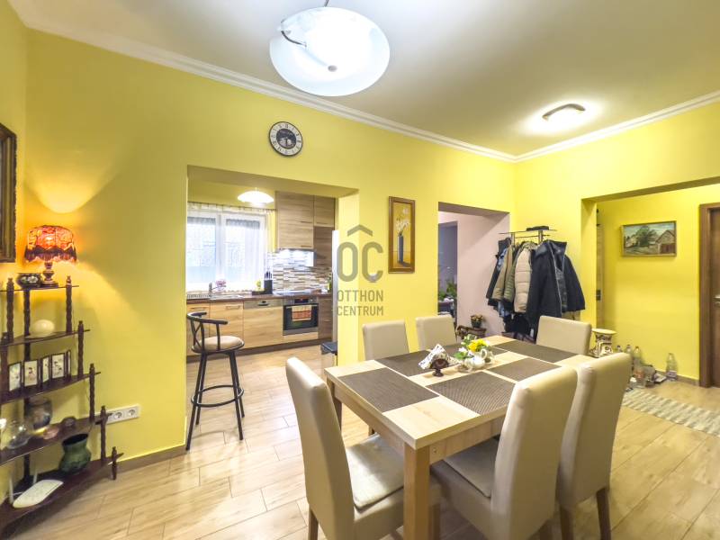 Két különálló, felújított épület egy tágas, virágos telken – tökéletes választás kétgenerációs családoknak!Ezen a 1281 m²-es, gondozott, virágokkal teli telken egy 80 m²-es főépület és egy 50 m²-es különálló lakrész található. A két épület egymástól független, mégis közvetlenül egymás mögött helyezkedik el, így ideális megoldást kínál azoknak, akik szeretnének együtt, mégis külön élni.FőépületA főépületet 2017-ben teljeskörűen felújították, ami magában foglalta az elektromos hálózat teljes cseréjét, a belső burkolatok megújítását, valamint egy hűtő-fűtő klíma beépítését. A ház kívülről szigetelt, a háromrétegű, bukó-nyíló műanyag nyílászárók és a gázcirkó fűtés pedig biztosítják a kiváló hőmegtartást és az alacsony rezsit.Belépve egy tágas, világos nappali fogad, amely tökéletes a családi együttlétekhez. A modern, ízlésesen kialakított konyha minden szükséges kényelmet biztosít, a fürdőszoba és a WC külön helyiségben található, a házban pedig bőséges tárolási lehetőség áll rendelkezésre. A harmonikus elrendezés és az igényes kivitelezés igazán otthonossá teszi az ingatlant.Hátsó lakrész:A főépület mögött egy különálló, 50 m²-es lakrész található. Ez egy önálló, intim élettér, amelyben saját hálószoba és igényesen kialakított fürdőszoba kapott helyet. Tökéletes megoldás mindazoknak, akik szeretnék megőrizni a függetlenségüket, miközben közel maradnak a családhozTelek és környezetA 1281 m²-es telek rendezett, virágokkal és dísznövényekkel teleültetett kert, amely ideális hely a pihenésre, kertészkedésre vagy a családi együttlétekre. A tágas udvar lehetőséget ad akár további bővítésre, autóbeállásra, vagy egy kellemes kerti pihenő kialakítására is.Kinek ajánljuk?Ez az ingatlan kiváló választás kétgenerációs családoknak, akik szeretnének egymás közelében, de mégis külön élettérben élni.Ugyanakkor ideális nagyobb gyerekes családoknak is, ahol a fiatal felnőtt önálló lakrészt kaphat, de vállalkozóknak is remek lehetőség, hiszen a hátsó épület akár vendéglakásként vagy dolgozószobaként is hasznosítható.