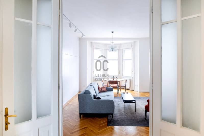 Október 6. utca az egyik legértékesebb része Lipótvárosnak. A kerület 10 legdrágább utcája között van.*Nevét az aradi vértanúk emlékére kapta.5 perc sétára a Parlament, Szabadság tér, Szent István Bazilika, Operaház, Dunakorzó és még sorolhatnám.Éttermek, kávézók széles választéka elérhető.Itt épült 1911-ben Román Miklós és Román Ernő tervei szerint ez a klasszikus, lipótvárosi polgári épület.Az 58 m2 - es lakás a liftes ház 5. emeletén van.Nappalija az Október 6. utcára néz, egyik oldalán padlótól-plafonig végig futó gardróbbal.Hálója csendes, befelé néző ablakkal.Az ablakos, gépesített, külön - konyha nagy értéke a belvárosi lakásoknak. Ma már ritkábban találkozunk vele. ( általában a nappaliba építik ) Fürdője modern, zuhanyzóval ellátott.A külön háztartási helyiségben található a kazán, mosógép.A lakás felújított, klimatizált, egyedi gáz fűtéssel. Ajánlom otthonnak, ingatlanbefektetésnek egyaránt.* KSH ingatlan adattár