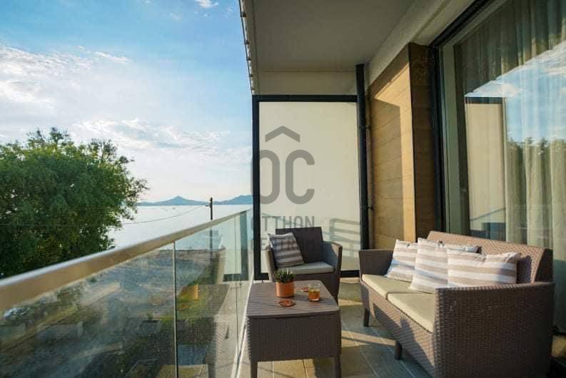 A Balaton déli partján, Fonyódon, közvetlen vízparti elhelyezkedéssel kínálunk megvételre 2020-ban épült, prémium minőségű, teljes bútorzattal felszerelt lakást, örök balatoni panorámával.Az ingatlan ideális választás pihenésre, állandó lakhatásra, valamint kiemelkedően jó befektetés idegenforgalmi hasznosításra is.A modern apartmanház 2020-ban került átadásra, összesen 84 lakással. A korszerű műszaki megoldások és a gondosan megtervezett közösségi terek minden korosztály számára magas szintű komfortot és valódi balatoni élményt biztosítanak.Főbb jellemzők:• 2020-ban épült, prémium kategóriás tégla társasház• nettó 49 nm lakótér + 11 nm fedett terasz• nyugati fekvés, oldalirányú örök balatoni panoráma• közvetlen vízparti elhelyezkedés• csendes környezet, mégis központ közeli lokáció• egész évben lakható. ingatlan nyilvántartás szerint : lakás ( kedvező adózás)• az épület 2. emeletén, zárt lépcsőházból megközelíthető• 2 lift áll rendelkezésre• modern műanyag nyílászárók, szúnyoghálóval• egyedi mérőórákBelső kialakítás és felszereltség:• egyedi tervezésű teljes bútorzat, a vételár részét képezi• teljesen gépesített konyha (mosogatógép, kerámia főzőlap, elektromos sütő, mikró, beépített hűtő)• kényelmes terasz minőségi kerti bútorokkalPraktikus elosztás, tágas terek:• előtér gardróbbal• amerikai konyhás nappali–étkező, közvetlen teraszkapcsolattal• külön nyíló hálószoba, teraszkapcsolattal• zuhanyzós fürdőszoba• külön WC kézmosóval. terasz Műszaki tartalom és extra kényelmi funkciók:• házközponti fűtés és melegvíz, egyedi méréssel• inverteres hűtő–fűtő klíma• elektromos redőnyök• távvezérelhető fűtés, klíma és árnyékolás• alacsony fenntartási költség, közös költség kb. 30.000 Ft/hó • recepció, porta szolgálat, zárt udvarKözösségi szolgáltatások:• belső udvar medencével• Balaton felőli oldalon saját kert, napozóágyakkal• saját stég, közvetlen strandhasználat• kisebb játszótérA lakáshoz egy fedett gépkocsibeálló is tartozik, mely külön megvásárolandó, ára 8,5 M Ft, és kizárólag a lakással együtt értékesíthető.Fonyód központja, a kikötő, éttermek és üzletek néhány perces sétával elérhetők. Fonyód a Balaton déli partjának egyik legkedveltebb üdülővárosa, páratlan panorámájáról és kiváló megközelíthetőségéről ismert. Autóval ( M7 autópálya, 7-es főút), vasúton és vízi úton egyaránt könnyen elérhető, egész évben népszerű turisztikai célpont.Egyedülálló lehetőség azok számára, akik prémium minőségben szeretnék megélni a balatoni életérzést.További információért, megtekintéssel kapcsolatban várom hívását.Az adatok tájékoztató jellegűek.