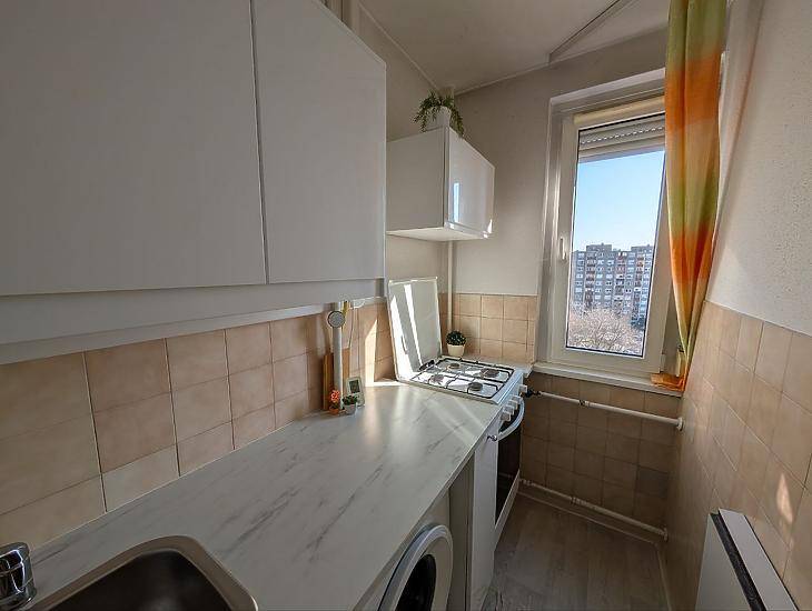 Eladó egy 34 nm alapterületű, 1,5 szobás, jó állapotú lakás Budapest IV. kerületében, Újpest központ közelében. A praktikus elosztásnak köszönhetően a lakás kis mérete ellenére jól élhető tereket kínál, így ideális választás lehet első otthonnak, fiatal pároknak vagy akár befektetési célra is. A környék közlekedése kiváló: a közelben megáll a 20E busz, valamint mindössze két megállóra található az Újpest-Központ, ahol az M3 metró biztosít gyors és kényelmes eljutást a belvárosba. A mindennapi bevásárlás egyszerűen megoldható, hiszen a közelben megtalálható a SPAR, a Penny és a dm is.