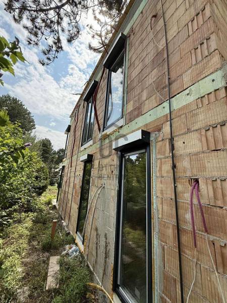 MINDJÁRT KÉSZ!!!! Új építésű, magas minőségű ikerház 200 méterre a Balatontól! Vegye meg akár az egész épületet!Siófok a Balaton déli partjának egyik LEGKEDVELTEBB ÉS LEGKERESETTEBB települése. Budapestről autópályán gyorsan megközelíthető.Egy impozáns, mutatós épületet álmodtak meg. A látványtervek önmagukért beszélnek. A vételár a kulcsrakész állapotra értendő, mely a vevő igényei szerint kerül kialakításra.Épület paraméterek:290m2 telek részközel 200m2 kizárólagos használatú kert107 m² + 25 m² terasz + 21 m² erkélyAmerikai konyha + nappali + 4 hálószoba + 3 fürdőszobaGépkocsibeálló2-es lakás: 185,9 Millió ft348m2 telekrészItt a terasz 20m2 és az erkély 25m2 (míg az 1-es lakásnál fordítva van)Legfontosabb műszaki paraméterek:- Falazat 25 cm vastag Leiertherm blokktéglából, a két lakás köztes fala külön falazattal- Homlokzat: 15cm vastag grafitos hőszigeteléssel, kőhatású burkolólappal- Nyílászárók (ablakok, teraszajtók)bukó-nyíló, teraszajtó emelő-toló funkcióval van ellátva - hőszigetelt háromrétegű üvegezésűek. A nyílászárók rejtett tokos, elektromos, alumíniumból készült redőnyökkel lesznek ellátva.- Kültéri burkolatok: a teraszok, erkélyek fagyálló padlólapokkal- Belső burkolatok: laminált-, kerámiaburkolatokkal készültek a belső terek.- Fűtés/hűtés: hőszivattyús rendszer padlófűtéssel kombinálva, hűtés klímávalEzüstpart, Balatonszéplak adottságai:- A Sió csatornától nyugatra fekvő szakasz Ezüstpart néven ismert, keletre pedig az Aranypart található.- A szállodák nagy része és a város szórakoztató központja, a Petőfi sétány az Aranyparton található.- Az Ezüstpartot inkább egy-két szintes nyaralók és panziók uralják, ott végig szabadstrand van a partvonal mentén.- Rendezett, tiszta és rendkívül zöld strandjai miatt nagyon népszerű hely.- A Balaton keleti medencéjének déli partján található a Siófok Ezüstpart Vitorlás Egyesület kikötője. A kis vitorláskikötő saját használatban van, de vendégeket is fogad.Ami vissza van:Külső hőszigetelés és betonhatású kőporcelán a homlokzatraHideg/melegburkolatokFestésVillamos szerelvényezésGépész szerelvényezés+szaniterekKülső tereprendezés, kerítésBeltéri ajtókAz energetikai tanúsítvány készítése folyamatban van. Amint rendelkezésre áll, úgy azzal a hirdetést frissítjük. CSOK és OtthonStart Programra is akár!