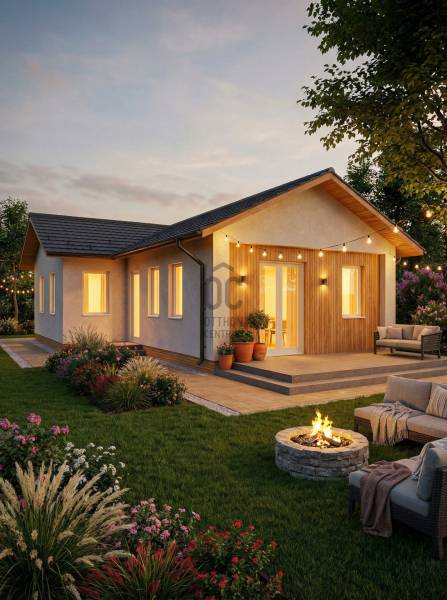 Képzeld el, hogy egy új otthon vár rád Siófok csendes és barátságos Sóstó városrészében.Ez a prémium kivitelezésű, modern ház tökéletes választás családosok számára, akik értékelik a világos tereket és a kényelmet. Az ingatlan alapterülete 71,26 nm, amely három tágas szobát és egy fürdőszobát foglal magában, így ideális helyet biztosít a családi élethez. A házhoz tartozik két terasz is, ahol élvezheted a nyári estéket és a napsütést. A kert lehetőséget ad a gyerekeknek a szabadban való játékra, míg te a friss levegőn pihenhetsz. Az ingatlan állapota kiváló, a hőszivattyús padlófűtés, a klímás hűtés és a dryvit szigetelés gondoskodik arról, hogy az otthonod mindig kellemes hőmérsékletű legyen, függetlenül az évszaktól. A modern dizájn és a világos belső terek egyedi hangulatot teremtenek, ami minden családtag számára vonzó lehet. A környék csendessége és biztonsága ideális környezetet biztosít a gyermekek számára. A közlekedési lehetőségek is kiválóak: könnyen megközelíthető a város központja, ahol minden szükséges szolgáltatás megtalálható, legyen szó boltokról, éttermekről vagy iskolákról. Az autóval közlekedők számára pedig a főbb utak közelsége biztosítja a gyors elérhetőséget. Ez az ingatlan nem csupán egy ház, hanem egy lehetőség, hogy egy új életet kezdj a családoddal egy csodás környezetben, de befektetésnek is ideális, ha szezonális ház kiadásban gondolkodik a jövőbeni tulajdonos.A Balaton, a legközelebbi szabadstrand kb. 15 perces gyalogútra van, két irányból is megközelíthető. Ezen a telken két egyforma ház épül, melyek önállóak, a telek pedig osztatlan közös tulajdon lesz ügyvédi használati megosztással. Mindkét házhoz egy kb. 430 nm-es telekrész, kert fog tartozni. Az egyik ház a Léda utca felől, a másik pedig a Luca utca felől, önállóan lesz megközelíthető.Műszaki leírásAlapozás: betonacél, C 20/25Falazás: főfalak - ytong 30 cm, válaszfalak - ytong 10 cmSzigetelés: 15 cm dryvit rendszer, a födém 20 cm üveggyapot szigetelés és gipszkartonFödém: könnyű szerkezetű, nem járhatóTetőszerkezet: fenyő fűrészáru, ácsolt építésűFedés: cserép (antracit)Nyílászárók: 3 rétegű, hőszigetelt műanyag ablakok és bejárat ajtó (fehérek) - redőny, szúnyogháló nincsBeltéri ajtók: több színből választható dekorfóliás ajtókBurkolatok: szobákban - laminált parketta, konyha-fürdőszoba-wc - csempe és padlólap (választhatóság 5000 Ft/nm értékben)Festés: glettelés-festés 3 rétegben (fehér)Fűtés, hűtés: hőszivattyús padlófűtés és 1 db klíma a nappalibanSzaniterek: 1 db kád (kérésre zuhany értékegyeztetéssel), 2 db wc, 1 db mosdó, 1 db kézmosó (MOFÉM csaptelepekkel)Villanyszerelés: 3 fázis, 3x20A, komplett villanyszerelés szerelvényekkel, gyengeáram kiépítés, H tarifaKörnyezet kialakítás: kerítések, elektromos kis és nagykapu, járdák, lépcsők, földfeltöltés, füvesítés, eső elvezetés a kertbe történikBútorozottság: nem kerül beépítésre semmilyen bútor vagy gépesítés (kivéve természtesen a hűtés-fűtés gépészetet)Ha kérdéseid vannak, vagy szeretnéd megtekinteni ezt a különleges otthont, ne habozz, keress bizalommal!Az energetikai tanúsítvány készítése folyamatban van, amint rendelkezésre áll, úgy azzal a hirdetés frissítésre kerül.(A képek között a hivatalos alaprajz alapján a mesterséges intelligencia segítségével tervezett látvány alaprajz is látható, tájékoztató jelleggel, valamint egyéb AI látványtervek - a hivatalos látványtervek mellett - szintén kedvcsináló jelleggel!)