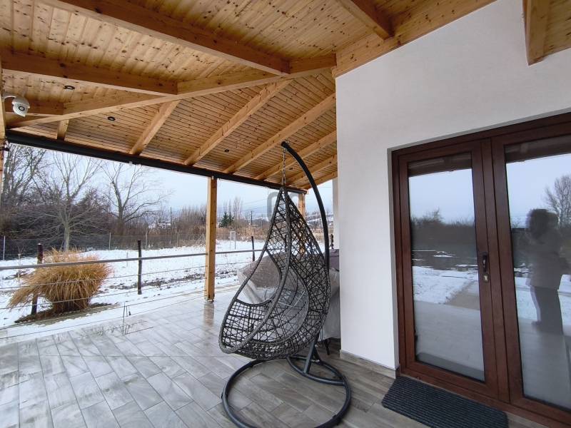 Markaz belterületén kínálunk megvételre egy nyaraló jellegű, ugyanakkor teljes mértékben állandó lakhatásra alkalmas ingatlant, nyugodt, rendezett környezetben.A 406 m²-es telek gondozott, a térkövezett udvar és a két kapubeálló kényelmes parkolási lehetőséget biztosít több autó számára is. Az ingatlan NF típusú téglából épült, szigeteléssel ellátott, ami kedvező hőszigetelést és alacsony fenntartási költségeket biztosít.A ház fúrt kúttal rendelkezik, valamint vegyes tüzelésű központi fűtéssel felszerelt. A komfortérzetet növelheti az előre kiépített klímaberendezési lehetőség.A nyílászárók fa , minőségi, igényes kivitelezéssel.3 hálószobával 2 fürdőszobával tágas nappalival amerikai konyhával megálmodott 2018 ban megípített házikó.Az ingatlan egyik kiemelkedő előnye a 20,64 m²-es, tágas terasz, amely kiváló helyszíne a pihenésnek és a családi, baráti összejöveteleknek.Ezen felül a tetőtéri erkély közvetlenül a szobából nyílik, és különleges hangulatával igazán lenyűgöző, ideális reggeli kávézáshoz vagy esti kikapcsolódáshoz.Ha a képeket megnézed láthatod, ide csak jönnöd kell és élvezheted az ingatlan és a terület adta lehetőségeket!Belterületi elhelyezkedésének köszönhetően az ingatlan állandó lakcím létesítésére alkalmas, így kiváló választás életvitelszerű lakhatásra, nyaralónak vagy befektetésnek egyaránt.Keress bozalommal beszéljünk róla!
