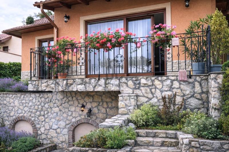 Pest vármegyében, Nagykovácsi egyik keresett, nyugodt lakóövezetében kínálunk megvételre egy 209 m² hasznos alapterületű, korszerű kialakítású családi házat, 987 m²-es, parkosított telken. Az ingatlan kiváló választás nagycsaládosok, többgenerációs együttélésben gondolkodók vagy otthoni munkavégzéshez tágas életteret igénylők számára.Ingatlan paraméterei:2 nappali, 5 külön nyíló hálószoba, 3 fürdőszoba, 32,2 m²-es, kertkapcsolatos terasz, 16 m²-es és 11,5 m²-es erkély, déli tájolás, tehermentes jogi státusz.Elrendezés és belső kialakítás:A ház átgondolt alaprajzi struktúrával rendelkezik. A két nappali elkülöníthető funkciókat tesz lehetővé: reprezentatív fogadótér, családi élettér, dolgozószoba vagy hobbihelyiség egyaránt kialakítható. Az amerikai konyhás nappali tágas, természetes fénnyel bőségesen ellátott, közvetlen kapcsolatban áll a terasszal és a kerttel. A hálószobák szeparáltan helyezkednek el, biztosítva az intimitást és a zavartalan pihenést. A három fürdőszoba kényelmes használatot garantál akár nagyobb létszámú család számára is.A déli fekvésnek köszönhetően a lakóterek egész nap világosak, energiahatékonysági szempontból is kedvező adottságúak.Műszaki tartalom: gáz cirkó fűtési rendszer, split klímaberendezés, jó műszaki és esztétikai állapot.Külső terek:A gondozott, intim kert ideális gyermekes családok számára, valamint szabadtéri pihenésre, kerti rendezvényekre. A terasz és a két erkély további használható életteret biztosít, panorámás kilátással a zöld környezetre.