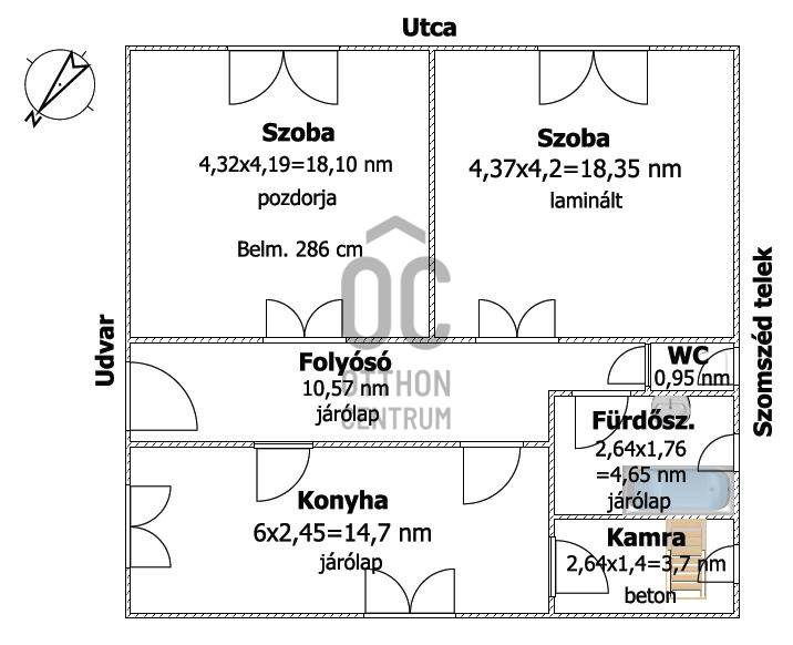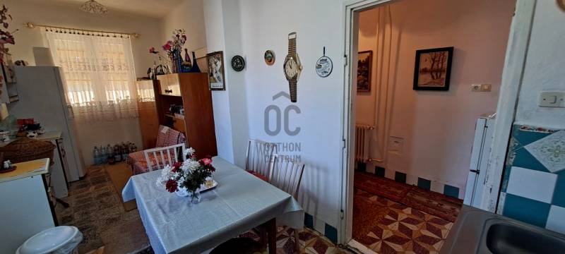 Tisztelt Érdeklődő!Csongrád-Csanád vármegyében, Kiszomboron kínálunk megvételre egy 71 m² hasznos alapterületű téglaépítésű családi házat, amely egy tágas, 1682 m²-es telken helyezkedik el, nyugodt, csendes környezetben. A település központja autóval mindössze 2 perc, kerékpárral 3 perc, gyalogosan körülbelül 11 perc alatt elérhető.A ház elrendezése praktikus, két külön nyíló szobából, konyhából, kamrából, fürdőszobából, külön WC-ből és közlekedőből áll. Az egyik szoba laminált padlóval burkolt, a másik pozdorjás borítású, a többi helyiség járólapos, a kamra betonozott.A fűtést és a meleg víz ellátást gáz kondenzációs kazán biztosítja radiátorokon keresztül. Az ingatlan teljes közműellátással rendelkezik, a villamos hálózat 3x16 amperrel kiépített.A nyílászárók részben már műanyag kivitelűek (bejárati ajtó, utcai szoba ablakai, konyha egyik ablaka), a többi fa nyílászáró karbantartást igényel. A ház belső tere felújítást és karbantartást igényel, ugyanakkor stabil szerkezeti alapot biztosít, és lehetőséget ad arra, hogy új tulajdonosa saját elképzelése szerint alakítsa ki otthonát.A békéscsabai cseréppel fedett tető, valamint a tégla falazat időtálló szerkezetet képvisel.A telken egy különálló, 55 m²-es téglaépület is található, amely műanyag nyílászárókkal, lemeztető fedéssel, betonozott aljzattal és elektromos árammal rendelkezik. Ez az épület kiválóan alkalmas műhelynek, tárolónak, vállalkozási célra vagy akár egy külön lakrész kialakítására is.A nagy méretű telek számos lehetőséget kínál kertészkedésre, bővítésre vagy további fejlesztésekre.Az energetikai tanúsítvány készítése folyamatban van, amint rendelkezésre áll, úgy azzal a hirdetés frissítésre kerül.Az ingatlan 60–90 napon belül birtokba vehető.Ez a ház ideális választás lehet mindazok számára, akik élhető otthont keresnek nyugodt környezetben, és fontos számukra a nagy telek és a további lehetőségeket kínáló melléképület.Hívjon most, és foglaljon időpontot megtekintésre! Ne hagyja ki ezt a lehetőséget!Kiszomborról bővebben itt: http://www.kiszombor.hu/kiszomborrol.htmlLegyen tisztában pénzügyeivel, mielőtt elkötelezi magát! Ebben díjmentesen az Ön rendelkezésére áll bankfüggetlen hitelközvetítőnk.Vevőinket profi és kedvező díjazású ügyvédi háttérrel is segítjük a szerződéskötés során.Ha egy másik weboldalon találta ezt a hirdetést, kérem, nyissa meg az Otthon Centrum weboldalát, kattintson a „Regisztrációs szám keresése” menü pontra, és írja be ezt a regisztrációs számot a keresőbe: H514174 itt meg tudja tekinteni az ingatlanról készült még több képet, vagy írjon nekem, és szívesen elküldöm a képeket.#otthoncentrummako #kiszombor #kiszomboreladohaz #ingatlan #otthoncentrum #eladohaz #ingatlanpiac #nyugalom #hagymatikum #forsale #oc #hitel #ocmako #biztositas #realestate #veledmindenlepesnel #kerteshaz #csaladihaz #ingatlankozvetites #almokatepitunk