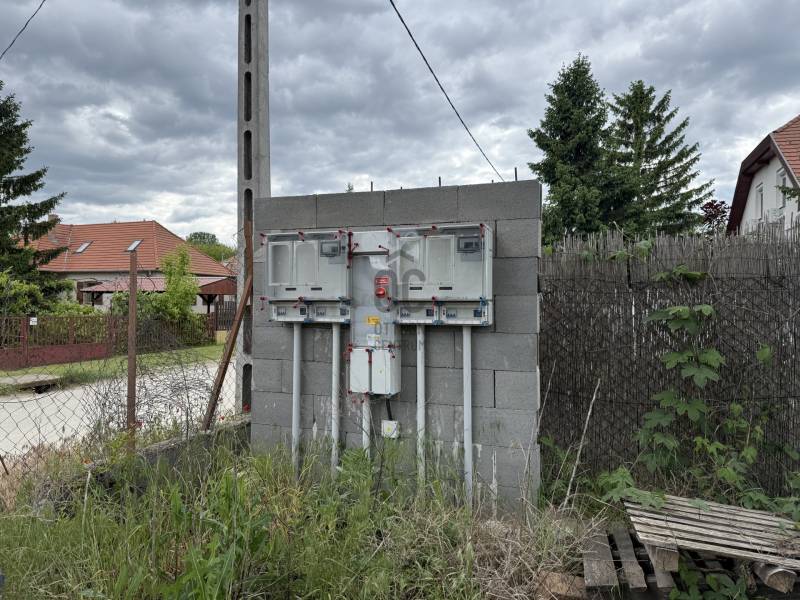 Veresegyházon Viczián városrészben kínálunk megvásárlásra egy kiváló lehetőséget kivitelezőknek vagy összeköltöző családoknak, akik egy megkezdett építkezés befejezésével két újépítésű ingatlant alakíthatnak ki saját részükre. A tervezett ikerházak egyenként 132 nm körüli méretűek. Alaprajz a képek között feltöltve.Telek mérete 940 nm, nagy előnye, hogy két utcára nyílik, így a földszintes ikerházak háttal érintkeznek egymással, mindkét tulajdonos külön utcáról járhat be a saját ingatlanába, nincs egymáson átjárás.A betonalap megvan, benne a csatorna közmű, telken belül a villany bekötés ( 2 lakásra kialakítva), gáz szintén telken belül, víz az utcán a telek előtt, onnan beköthető.A tervezett ingatlanok paraméterei:-földszintes kialakítás-tágas nappali-konyha-étkező +3 hálószoba (12 nm felettiek), két fürdőszoba, kamra, háztartási helyiség, külön mellékhelyiség, nagy terasz, garázs, az egyik hálószobához privát fürdőszoba tartozik.Saját telek mérete 470 nm.Teljes tervdokumentáció a vételár része.A környék csendes, rendezett, családi házakkal beépített.Vonatállomás a közelben található.
