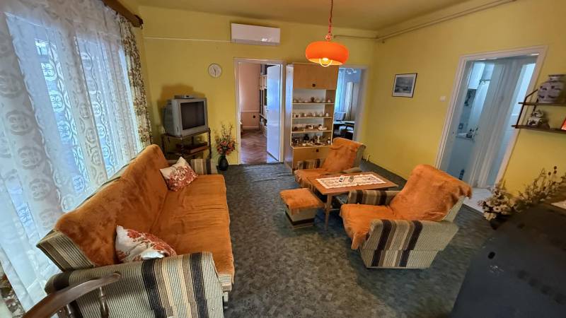 Családi ház a Balatonon!Balatonfenyves csendes utcájában,500 méterre a kikötőtől és a központi strandtól eladó ez a 80-as években épült,statikailag nagyon jó állapotban levő családi ház.Helységei:Három tágas,világos hálószoba,nagy nappali,ahonnan a teraszra érünk,fürdószoba,konyha és spájz.Központi fűtés gázkazánnal illetve kandalló is található,palatető,fa nyílászárók.Villanyhálózat jó,ipari áram is van:)Igény szerint lehet rá költeni,de akár egy festés után költözhető.Az udvarban nyári konyha,tároló,műhely és garázs is van,hogy mindennek meglegyen a helye.Akár nyaralónak,akár új otthonnak is tökéletes!Nézze meg velem!!Einfamilienhaus am Balaton!In einer ruhigen Straße von Balatonfenyves, 500 Meter vom Hafen und dem zentralen Strand entfernt, wird dieses in den 80er Jahren gebaute Einfamilienhaus zum Verkauf angeboten, das sich in sehr gutem statischen Zustand befindet.Räume:Drei geräumige, helle Schlafzimmer, ein großes Wohnzimmer, von dem man auf die Terrasse gelangt, Badezimmer, Küche und Speisekammer.Zentralheizung mit Gasheizung sowie ein Kamin, Schieferdach, Holzfenster und -türen.Die Elektroinstallation ist gut, auch Starkstrom ist vorhanden :)Bei Bedarf kann man noch investieren, aber nach einem Anstrich ist es auch bezugsfertig.Im Hof gibt es eine Sommerküche, Abstellraum, Werkstatt und Garage, damit alles seinen Platz hat.Perfekt sowohl als Ferienhaus als auch als neues Zuhause!Grundstück 500 m2.Schauen Sie es sich mit mir an!!