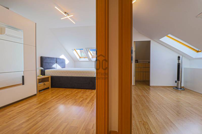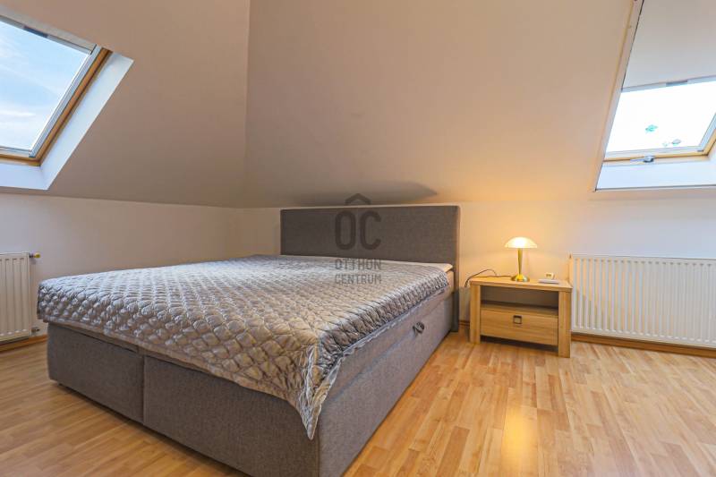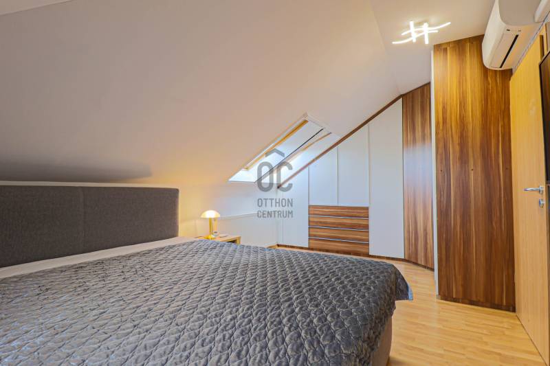 A Pihenőkereszt lakóparkban kínálok megvételre egy kiváló állapotú, igényesen felújított ikerházat. A nyugodt környezet, a panorámás kilátás és a tágas, világos terek teszik ezt az ingatlant igazán különlegessé.Főbb jellemzők:- 3 szintes otthon átgondolt, kényelmes elrendezéssel.- Alsó szint: fűtött garázs, iroda vagy hobby szoba, külön wc, mosókonyha. A garázsból közvetlen feljárás biztosított a lakószintre.- Földszint: előszoba, kamra, hálószoba saját erkéllyel, fürdőszoba, valamint egy teraszkapcsolatos, tágas amerikai konyhás nappali, amely a családi élet központja lehet.- Felső szint: tágas közlekedő, 3 külön bejáratú hálószoba, fürdőszoba és egy különálló wc.Kiemelt extrák és műszaki felszereltség:- Az ingatlan kifogástalan belső állapotú, a felújítás 3 éve valósult meg, és szinte azonnal birtokba vehető.- A gondozott 454 m2- es kertben kiépített öntözőrendszer és kerti sütögető gondoskodik a kikapcsolódásról.- Modern riasztórendszer a biztonság érdekében.- Központi porszívó, amely a mindennapi takarítást teszi kényelmesebbé.- Az emeleti hálószobák klimatizáltak, így a nyári hónapokban is kellemes hőmérséklet biztosított.- Újszerű kondenzációs gázkazán gondoskodik a gazdaságos és hatékony fűtésről.Miért érdemes ezt az otthont választani?A ház kiváló elosztásának és panorámás elhelyezkedésének köszönhetően ideális választás családok számára, akik értékelik a tágas tereket és a modern kényelmet. A nyugodt környezet biztosítja a pihenést, míg a gyorsforgalmi út és a nagyobb élelmiszer boltok közelsége könnyen elérhetővé teszi a mindennapi teendőket.Ne hagyja ki ezt a lehetőséget! Az ingatlan minden igényt kielégít – komfort, minőség és nyugalom egy helyen.Keressen bizalommal a részletekért és a megtekintésért!Keressen bizalommal a megtekintésért!Hitelre van szüksége?Az Otthon Centrum az ország egyik legnagyobb és legmegbízhatóbb hitelközvetítőjeként, teljes körű és díjmentes hitelügyintézéssel, biztosításkötéssel áll rendelkezésére!Kérje személyre szabott ajánlatunkat Kollégáinktól!