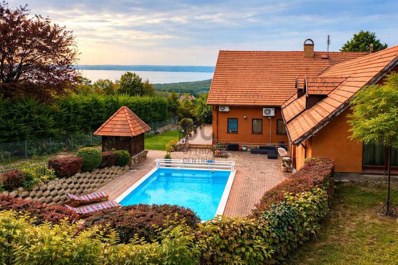 Felsőörs egyik legexkluzívabb részén, az Öreghegy csendes, természetközeli környezetében kínáljuk ezt a 2.113 m²-es telken elhelyezkedő, nettó 412 m²-es, háromszintes, 2018-ban teljes körűen megújított, kúria jellegű rezidenciát.A masszív szerkezet és a korszerű műszaki tartalom harmonikusan találkozik a klasszikus eleganciával. Egyedi fa nyílászárók, igényes belső kialakítás és letisztult terek biztosítják az időtálló minőséget.A birtok különlegessége a hangulatos borospince, a fedett kerti konyha és a 75 m³-es medence, amely privát wellness élményt teremt. A balatoni panoráma és az MK1-es övezet nyugalma valódi értéket képvisel.Ez az ingatlan nem csupán otthon, hanem életstílus.További részletekért és személyes megtekintésért várom megkeresését.