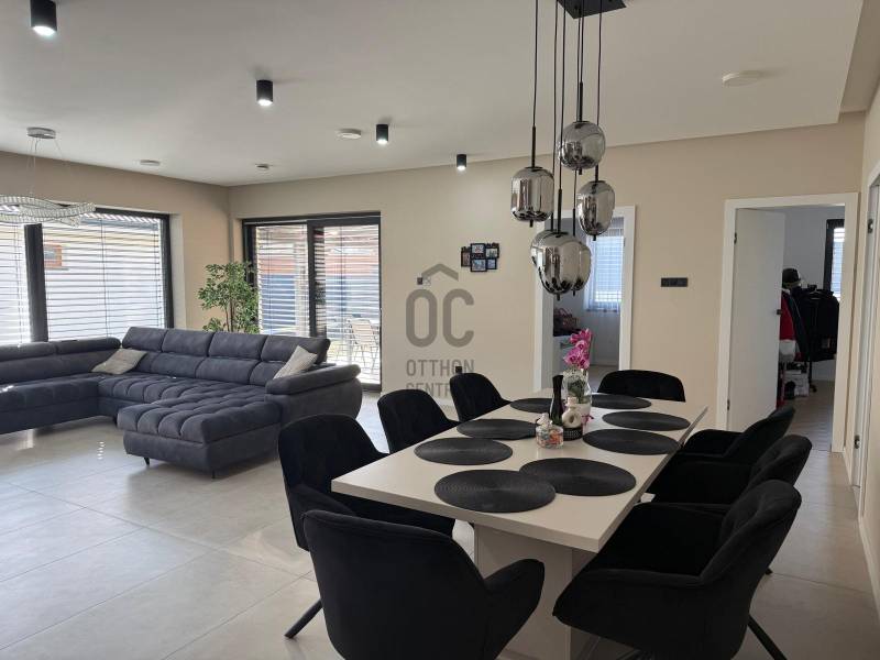 English and Hungarian speaking Estate AgentDebrecentől néhány percre, Pallag új osztású részén eladó egy nappali-amerikai konyha + 3 külön nyíló szobás, 2025-ben épült, igényes, önálló családi ház, bútorzattal együtt, 721 m2-es telken az alábbi tulajdonságokkal:* Porotherm 30 falazóblokk + 15 cm hőszigetelés* Marshall 3 rétegű fém+műanyag nyílászárók* Okos otthon - telefonról szabályozható a hűtés-fűtés * Kamerarendszer* Kinti-benti ledek* Távirányítható zsaluzia* Központi szellőztető rendszer* Lágyvizes rendszer* Légcsatornás klíma* H-tarifa* Midea 10 kw-s hőszivattyú* Festett, gépesített, teljesen új Cliff konyhabútor* Rejtett kamra* Látvány kandalló* Elektromos úszókapuAz utca még idén aszfaltozásra kerül, ami tovább növeli az ingatlan értékét és megközelíthetőségét.Az ingatlan hatalmas nappali-konyha-étkezővel bír, kiváló lehetőség nagyobb társaságok, családi rendezvények lebonyolítására. Az épület modern gépészeti megoldásokkal került megépítésre. Teljesen újszerű, modern, igényes otthon, csak be kell költözni.Az ingatlan vételára tartalmazza a képeken szereplő bútorzat árát is, igény szerint.További információval, megtekintéssel kapcsolatban várom hívását a hét minden napján! 0670-454-1491MODERN FAMILY HOME FOR SALE NEAR DEBRECEN – PALLAGJust a few minutes from Debrecen, in the newly developed area of Pallag, a high-quality, detached family home built in 2025 is for sale, featuring a living room with open-plan kitchen + 3 separate bedrooms, situated on a 721 m² plot.Key Features:*Porotherm 30 masonry + 15 cm thermal insulation*Marshall triple-glazed windows (metal + plastic)*Smart home system – heating/cooling controlled via smartphone*security camera system*indoor & outdoor LED lighting*remote-controlled external shutters (zsaluzia)*central ventilation system*water softening system*ducted air conditioning*H-tariff (reduced electricity tariff)*Midea 10 kW heat pump*brand new, fully equipped Cliff designer kitchen*hidden pantry*decorative fireplace*electric sliding gate Property Highlights:The street is scheduled to be asphalted this year, further increasing the property’s value and accessibility.The property offers a spacious living room–kitchen–dining area, making it perfect for hosting larger gatherings or family events.Built with modern engineering solutions, this home provides comfort, efficiency, and premium living standards.This is a turnkey, stylish, and modern home – ready to move in.Additional Information:The purchase price can include the furniture shown in the photos, upon agreement.For more information or to arrange a viewing, feel free to call anytime:+36 70 454 1491újszerű, Pallag, önálló ház, igényes, modern, egyszintes, magas műszaki tartalom, egy éves