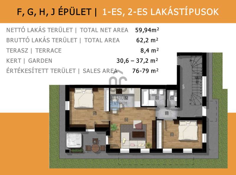 Projekt bemutatásaÚj lakások – Harmónia LigetCsendes, közel nulla energiaigényű, hatlakásos társasházi lakások kertvárosi környezetben. Válaszd ki új családi fészked CSOK-támogatással, és ébredj reggelente mosolyogva az új otthonodban.A nyugalom szigete – Harmónia LigetCsendes, közel nulla energiaigényű hatlakásos társasházi lakások kertvárosi környezetben.Válaszd ki új családi fészked CSOK-támogatással, és ébredj reggelente mosolyogva az új otthonodban.Biztonságos és otthonos lakóparkHatlakásos kis társasházak biztonságos, zárt lakóparkbanKertkapcsolatos vagy nagyméretű teraszos lakásokKözel nulla energiaigényű otthonok saját hőszivattyús, egyedi hűtés–fűtéssel és hálózat-visszatáplálásos napelemes rendszerrelSaját jacuzzi és szauna lehetősége minden lakáshozParkosított környezet, zárt gépkocsibeálló és e-autó-töltési lehetőségBudapest utolsó kertvárosi fejlesztéseinek egyikeBölcsőde, óvoda, általános iskola és gimnázium helybenBevásárlóközpont, korszerű kórház és orvosi rendelő a közelbenSoroksár legszebb részén, a Szentlőrinc Golfklub mellett, a beruházás során 8 lakóépület valósul meg, melyek 2023 végén illetve 2024 elején kerülnek átadásra.Az ingatlan a XXIII. kerület Szentlőrinci telepén található, határolja:Szent László utca – Homokliliom utca – Víziboglárka utca – Sisakvirág utca.A 2021-ben megváltozott energetikai előírásoknak minden épületszerkezet és energetikai paraméter megfelel.Az épületek az új EU „közel nulla” energetikai előírásainak megfelelő, emelt műszaki tartalommal készülnek.A telken a megközelítést egy hosszanti és egy keresztirányú feltáróút biztosítja. Az utak térburkolatot kapnak, itt található a gyalogosközlekedés és a lakásokhoz tartozó parkolás.A tetőkre napelemek kerülnek.A terület körbekerített, személyi és gépjárműkapuval, előregyártott acélszerkezetű kivitelben. A kapuk mellett kukatárolók és előírt kerékpártárolók létesülnek.Tervezett épület ismertetéseA lakóépületek alápincézetlen, földszint + emelet + tetőtér kialakításúak. Minden épület külön fogyasztásmérőkkel rendelkezik. A villanyórák az osztatlan közös tulajdonú kerítés melletti kukatárolók falába kerülnek. A vízórák a kerítés mellett kialakított aknában kapnak helyet. A gépkocsi-behajtás távirányítású kapun keresztül történik, a személyi bejárat külön kaput kap.