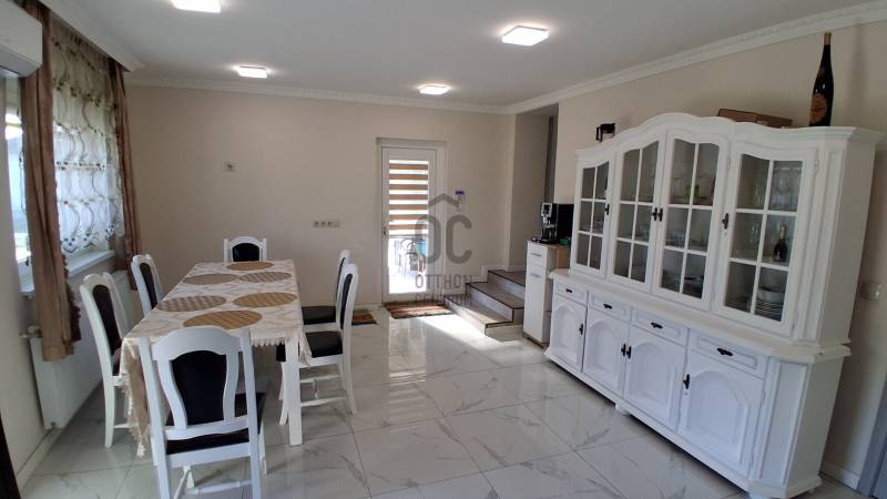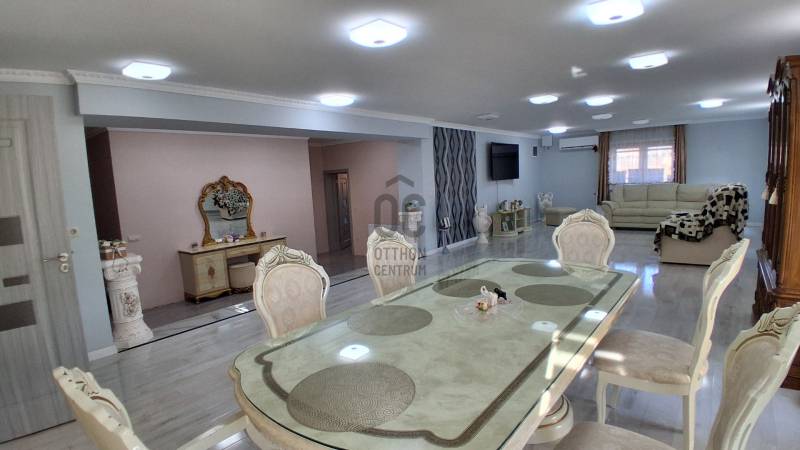Prémium minőségű, 2025-ben épült családi otthon!Derecske kedvelt városrészén egy tágas életteret és azonnali üzleti lehetőséget kínáló modern családi ház várja új lakóit!Érdemes megtekinteni!Paraméterek:- 176 m² lakóház + 30 m² fedett terasz- a jelenlegi 3 szoba akár 5 szobává is alakítható, melyhez minden feltétel adott- Két külön lakóegység – ideális többgenerációs együttéléshez vagy bérbeadásra- Különálló, 30 m²-es üzlethelyiség, forgalmas út mellett – kiváló vállalkozási lehetőség- 1098 m²-es, rendezett telek, részben térkövezett udvarral- 2025-ben befejezett, újszerű állapot, modern műszaki megoldásokkal- Lakóház elrendezése:Tágas, világos 58 m²-es nappali–konyha–étkezőKényelmes hálószobaModern fürdőszoba és előszobaKülön bejáratú lakóegység: szoba–konyha egy légtérben, saját zuhanyzós WC-vel- Építés módozata:Az ingatlan egy stabil, hagyományos épület falain alapulva, teljes körűen kibővítve és modernizálva készült el. A ház összhatása teljes mértékben új építésű érzetet nyújt – minden burkolat, gépészet és műszaki megoldás korszerű.Komfort:- Vegyes tüzelésű kazán-padlófűtés és radiátor hőleadókkal _ gázcsonk az udvarban, az épületben is kialakítva a rákötéshez- 4 db klíma a kellemes hőmérsékletért egész évben- Laminált padló és igényes kerámia burkolatokAmennyiben a paraméterek megfelelnek Önnek, s ha egy modern, azonnal költözhető otthont keres, ahol fontos a tágas tér és a minőség, valamint vállalkozást indítana otthonról, vagy befektetési lehetőséget keres, állok rendelkezésére az ingatlan esetében!Részletekről és a megtekintésről érdeklődjön, várom megkeresését!Hajdú-Bihar, Derecske, ház, használt, eladó, 3-5 szoba, dupla komfort, újszerű