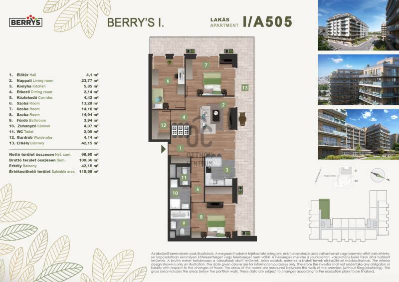 Projekt bemutatásaA XI. kerületi Bartók Béla úthoz közel épülő lakópark egy csendes, nyugodt környezetet kínál a város forgatagához közel. Az újbudai városrészben kialakított új lakónegyed kiváló közlekedési kapcsolatokkal rendelkezik. A zsákutcából nyíló elhelyezkedés biztosítja a forgalommentes, zavartalan lakókörnyezeti életet.A lakópark elhelyezkedése ideális azok számára, akik gyorsan és kényelmesen szeretnék elérni a város bármely pontját. A 4-es metró közelsége, az 1-2 perc sétatávolságra elérhető villamosok és a környéken közlekedő nappali és éjszakai autóbuszjáratok kiváló közlekedési lehetőséget biztosítanak. Az M1-es és M7-es autópályák közelsége, vagy a Kelenföld vasútállomás megkönnyíti az ország minden részébe, kiemelten a Balatonhoz és a Velencei tóhoz tervezett utazásokat.A legmodernebb mennyezeti hűtő- fűtő rendszernek köszönhetően alacsony fenntartási költségek várnak. A zöldtetők és az épület körüli zöldterületek nemcsak természetes hőszigetelést adnak, de a közösségi életet is támogatják.A gyönyörű kilátás nyugalma a városi nyüzsgés harmóniájával. A Berry’s minden lakásához tartozik loggia, erkély, vagy terasz!Várható műszaki átadás: 2027 vége