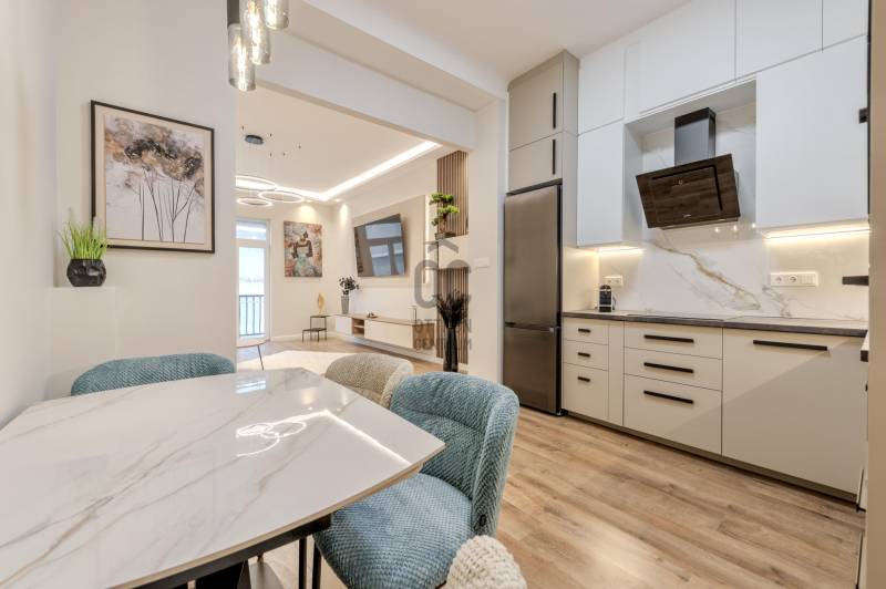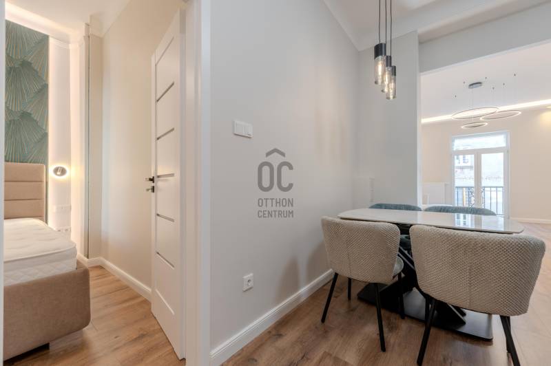 Újlipótvárosi Ékszerdoboz: Luxus Kényelem, Berendezve, Kiváló Lokációban – 129,9 M FtLokáció: Budapest XIII. kerület, Újlipótváros, Tátra utca, Méret: 55 m² Szobák: 2, 3.em (amerikai konyhás nappali + hálószoba) Ár: 129,9 M FtKöltözzön Be Azonnal! (Rövid Összefoglaló és Kiemelt Előnyök)Ne keressen tovább! Ez az 54 nm-es, 2 szobás lakás Újlipótváros szívében, a Tátra utcában a prémium minőséget és a kényelmet jelenti. A frissen, magas minőségben felújított és berendezett ingatlan ideális választás mindazoknak, akik azonnal élvezni szeretnék a modern belvárosi életérzést, vagy egy értékálló, könnyen kiadható befektetést keresnek. A tágas terek, a nagy belmagasság és az okos funkciók teszik ezt a lakást valódi otthonná.A Helyszín: Újlipótváros – A Stílusos BelvárosBudapest XIII. kerületének ezen része a legfelkapottabb és legkedveltebb környékek közé tartozik. Újlipótváros a polgári elegancia és a modern, pezsgő életstílus tökéletes egyensúlyát kínálja. A Tátra utca csendesebb, de frekventált elhelyezkedése biztosítja, hogy minden szolgáltatás karnyújtásnyira legyen.Infrastruktúra és Közlekedés:Kiváló ellátottság: Számos kiváló étterem, hangulatos kávézó, minőségi bolt és szolgáltatás érhető el sétatávolságra.Tökéletes közlekedési csomópontok közelsége: A nagyszerű tömegközlekedési kapcsolatok (villamos, busz, metró) révén a város bármely pontja gyorsan elérhető, ami az aktív életet élők és a bérlők számára is kiemelkedő előny.A Lakás: Tágas, Stílusos és FunkcionálisA lakás teljes felújítása során a funkcionalitás és a modern minimalista design volt a fő szempont.Tágas és Világos Terek: A 55 nm-en két külön szoba (amerikai konyhás nappali + hálószoba) kapott helyet. A nagy belmagasság és a gondos tervezés optikailag tovább növeli a terek érzetét. A lakás mellett egy másik külön bejáratú és külön hrsz-n lévő 25m2 felújított lakás is elérhető 67M áron, amennyiben valaki két lakást keres egymás mellett vagy szeretne összenyitni és egy 80m2-s 3 szobás lakást szeretne, akkor meg van a lehetőség rá! Bővebb információk személyesen!Prémium Kialakítás: Az amerikai konyhás nappali a modern életérzést tükrözi prémium kivitelezéssel és eleganciával.Beépített Kényelem: A vételár tartalmazza a beépített szekrényeket és bútorokat, és a teljes berendezést!Korszerű Megoldások: Az integrált motoros redőnyök és szúnyoghálók, a biztonsági ajtó és riasztórendszer gondoskodnak a nyugalomról és a kényelemről.Kedvező Fenntartás: A távfűtés egyedi méréssel rendkívül gazdaságos fenntartási költségeket tesz lehetővé.Pénzügyi Rugalmasság: A vételár a berendezéseket és beépített szekrényeket tartalmazza!Ne Hagyja Ki a Lehetőséget!Ez a lakás tökéletes megoldás azoknak, akik kompromisszumok nélkül akarnak belvárosi luxust vásárolni, vagy kiváló ár-érték arányú befektetést keresnek egy mindig felkapott kerületben. Az akadálymentesített bejárat további értéket képvisel.Ragadja meg ezt a ritka alkalmat! Kérem hívjon még ma, hogy ne maradjon le erről a kész otthonról! Várjuk hívását egy személyes megtekintés egyeztetésére!