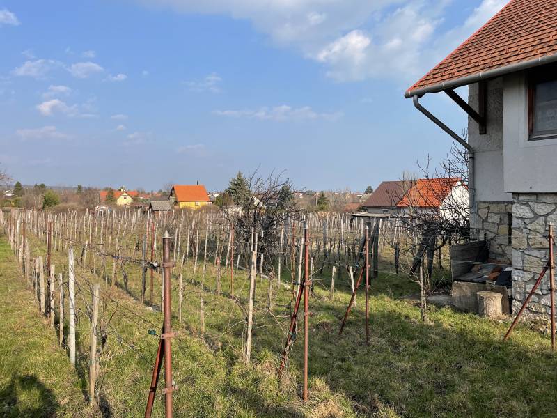 PANORÁMÁS SZŐLŐBIRTOK ELADÓ CSOPAK HEGYOLDALÁBAN - két felújítandó házzal, sok lehetőséggel A közel 3800 m²-es terület a Balaton-felvidék jellegzetes világát idézi: szőlősorok, gyümölcsfák, nyugalom és kilátás a tó felé. Különlegessége: gondozott Regent szőlővel telepített. A Regent egy rezisztens vörös szőlőfajta, amely kiválóan alkalmazkodik a Balaton-felvidék éghajlatához, ezért vegyszerhasználat nélkül, akár bioművelésben is biztonsággal termeszthető. Jó ellenálló képessége miatt kevesebb növényvédelemre van szükség, miközben mély színű, gazdag aromájú bor készíthető belőle. A fajta korai érésű és megbízható termőképességű, ezért a kisebb birtokokon és kézműves borászatokban is kifejezetten kedvelt. A területen két épület áll, amelyek egy működő kis birtok alapját adják és a jövőbeni fejlesztési lehetőségeket is biztosítják:1. A kétszintes, két lakóegységes, 80 m² alapterületű ház az 1970-es években épült, a 2010-es években új tetőszerkezetet kapott. Helyiségei: A földszinten konyha-étkező, két szoba, zuhanyzós fürdőszoba és egy 4 m2-es pince tároló található. Ez a szint egy lemezkandallóval fűthető. Az emelet külön, zárt lépcsőn közelíthető meg, ahol három szoba, egy fürdőszoba került elhelyezésre, valamint egy utólag beépített erkély, ahonnan szép kilátás nyílik a Balatonra. Az épület jelenleg felújítandó állapotú, ugyanakkor elhelyezkedése és adottságai miatt kiváló alap lehet egy karakteres balatoni nyaraló vagy egy hangulatos vidéki otthon kialakításához. Az új tulajdonos saját elképzelései szerint formálhatja tovább, miközben a panoráma és a környezet már most különleges értéket képvisel. 2. Pince-présház: A pincével együtt kb. 80 m²-es, hangulatos gazdasági épület jelenleg a szőlőfeldolgozás és tárolás helyszíne. Az épülethez egy két autó számára is alkalmas garázs kapcsolódik, Hörmann billenőkapuval szerelt.Közművek és jogi helyzet: víz és villany rendelkezésre áll, a két épülethez külön villanymérőóra tartozik. Két helyrajzi számon nyilvántartott, per- és tehermentes ingatlan. Tulajdoni lapon: zártkert, gazdasági épület és szőlő. Adásvétele kifüggesztés köteles.A rendezési terv szerint Má-sző 2 övezetben fekszik, ezért az épületek már tovább nem bővíthetőek. Elhelyezkedése: a Füredi útról közelíthető meg, 50 m jó állapotú murvás úton. Buszmegálló 300 m, Füred, Arács központja 1 km, a legközelebbi a csopaki strand 2,8 km távolságra érhető el. Az ingatlan többféle elképzelés megvalósítására is alkalmas lehet: egy nyugodt, természetközeli nyaraló vagy otthon, saját balaton-felvidéki szőlőbirtok vagy szálláshely kialakítására.Csopak a Balaton északi partjának egyik legkedveltebb települése, a Balaton-felvidéki borvidék meghatározó része. A település híres kiváló borairól, rendezett strandjáról és hangulatos szőlőhegyeiről. Balatonfüred közelsége élénk kulturális, sport és gasztronómiai életet biztosít, miközben a csopaki dűlők megőrizték a Balaton-felvidék nyugodt, falusias, természetközeli karakterét. A környéket szőlőültetvények, kirándulóutak és panorámás hegyoldalak teszik különlegessé.Építész- és ingatlanközvetítő irodánk minden hiteles szakmai segítséget meg tud adni, mellyel segíteni tudjuk döntését. Kérje az ingatlan részletes tájékoztató anyagát! Látogasson el http://balatoniingatlanguru.hazbank.hu/ weboldalunkra. Kövesse Balatoniingatlanguru facebook és balatoni_ingatlanguru instagram oldalunkat és iratkozzon fel YouTube csatornánkra http://www.youtube.com/@balatoniingatlanguru8238 ! Balatoni ingatlanguru – több mint közvetítő