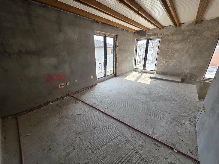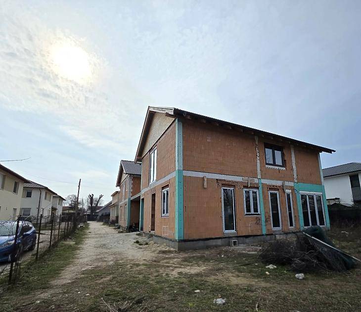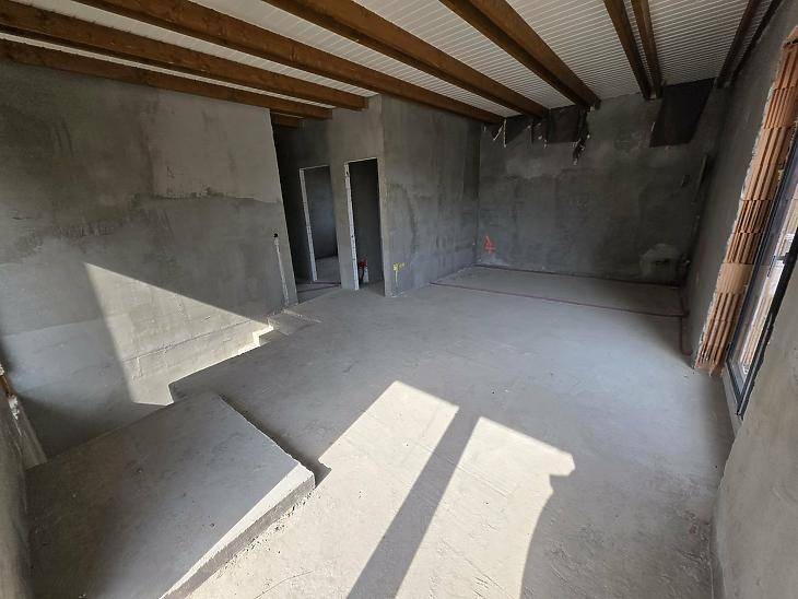 XVII. KERÜLETBEN, RÁKOSCSABA-ÚJTELEPEN, ELADÓ 50%-OS KÉSZÜLTSÉGI SZINTŰ 79 M2-ES HÁZRÉSZ, 42 M2-ES TERASSZAL. A HÁZRÉSZHEZ TARTOZIK EGY SAJÁT, FEDETT, ILLETVE EGY KÜLTÉRI GÉPJÁRMŰ BEÁLLÓ, ILLETVE 68 M2 TELEK!Az ingatlan jelenlegi állapotában kerül értékesítésre és rendelkezik, ügyvéd által ellenjegyzett használati megállapodással.30 NF Profi tégla falazat. Monolit vasbeton födém, földszint és emelet között. A fedélszerkezet, helyszínen ácsolt nyeregtető fenyőfából. Tetőfedés, Leier Toscana Classic Antracit cserépfedés.Drutex, Antracit színű nyílászárók.ELRENDEZÉS: • amerikai konyhás nappali, nagy teraszkapcsolattal• 3 külön nyíló szoba • fürdőszoba + mellékhelyiség• külön mellékhelyiség• kamra• közlekedőÁR: 49.5 M Ft.Az ingatlan finanszírozása, banki hitellel, illetve CSOK-al nem megoldható.VEVŐINK RÉSZÉRE A KÖZVETÍTÉS DÍJTALAN!A hirdetésben szereplő adatok tájékoztató jellegűek.