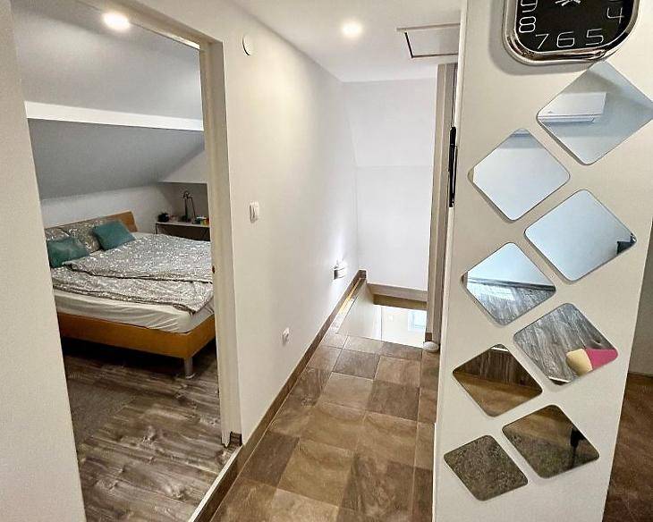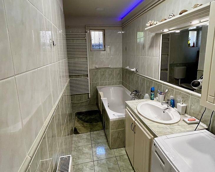 XVII. KERÜLET - RÁKOSKERT CSENDES, NYUGODT UTCÁJÁBAN ELADÓ EGY 122 NÉGYZETMÉTERES, TETŐTÉR-BEÉPÍTÉSES, ÖNÁLLÓ CSALÁDI HÁZ, 680 NÉGYZETMÉTERES TELEKKEL GARÁZZSAL ÉS GÉPKOCSI BEÁLLÓVAL.A ház 1970 és 1990 között épült téglából, stabil beton alappal és beton födémmel. A homlokzat 10 cm-es szigetelést kapott, míg a födém 30 cm-es szigeteléssel rendelkezik, amely hozzájárul az energiahatékonysághoz és az alacsonyabb fenntartási költségekhez.A tetőtér beépítéses kialakításnak köszönhetően a felső szint külön élettérként is használható, mivel kívülről, külön bejáraton keresztül közelíthető meg. Ez a megoldás ideális lehet akár kétgenerációs együttéléshez is.Az otthon fűtéséről gázkazán gondoskodik, a melegvíz-ellátást pedig két darab villanybojler biztosítja. A komfortérzetet tovább növeli, hogy mindkét szinten egy-egy hűtő-fűtő klíma került felszerelésre, amely egész évben kellemes hőmérsékletet biztosít.BURKOLATOK:Földszint: szobák parkettásak, a többi helyiség járolappal burkolt.Emelet: Konyha, nappali és szoba parkettával burkolt, a fürdőszoba és közlekedő pedig járolappal. ELRENDEZÉS: Földszint: 2 szoba, amerikai konyhás nappali, amiből egy fedett teraszra lehet kimenni, ahol egy 6 személyes szauna is található, kádas fürdőszoba + wc, közlekedő, pincelejáró. Emelet: 1 szoba, amerikai konyhás nappali, zuhanyzós fürdőszoba + wc.KÖRNYÉK:XVII. kerület, Rákoskert csendes utcában, jó közlekedésnél. Közelben található iskola, óvoda, gyógyszertár, bevásárlási lehetőség és a Rákoskert vasútállomás. Az Mo-ás autópálya 3 perc alatt közelíthető meg, közelben 97E gyors buszjárat az Örs vezér térre, valamint a 197, 504, 505, 506 buszjáratokFINANSZÍROZÁS:IRÁNYÁR: 124,9 M FT VEVŐINK RÉSZÉRE A KÖZVETÍTÉS DÍJTALAN!!A hirdetésben szereplő adatok tájékoztató jellegűek.