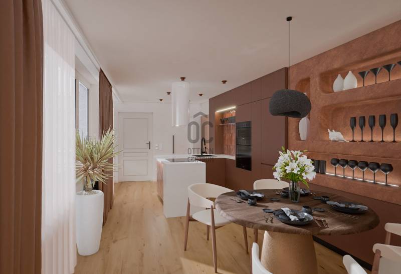 TETŐTERASZ A VÁROS FELETTLélegzetelállító tetőteraszos luxus penthouse Budapest V. kerületének szívében – kétszintes, exkluzív élettér a Veres Pálné utcában a Váci utca mellett.Budapest egyik legelegánsabb és leghangulatosabb utcájában kínálunk bérbeadásra egy nappali + 2 hálószobás, 2 fürdőszobás, gépesített konyhával rendelkező, teljeskörűen felújított és bútorozott tetőtér ráépítéses luxusingatlant.Miért tökéletes választás? Ez a belső kétszintes luxusotthon ritka lehetőség a belváros szívében: díjnyertes belsőépítész cég által átgondolt tereivel és privát wellness élményével tökéletes egyensúlyt kínál a városi élet pezsgése és a nyugodt otthoni pihenés között, ideális választás akár egyedülállóknak, családoknak vagy diplomáciai képviseletnek.LAKÁSRÓLAlsó szintA bejárati szinten egy tágas, közel 50 nm-es világos nappali–konyha–étkező tér található, ahol a nagy üvegfelületek természetes fénnyel töltik meg a lakást. Ezen a szinten kapott helyet egy külön nyíló hálószoba, egy kádas fürdőszoba, valamint egy praktikus háztartási helyiség is.Felső szint:A felső szinten kapott helyet a fő hálószoba, amely prémium berendezésével valódi lakosztály hangulatot teremt. Ezen a szinten található egy zuhanyzós fürdőszoba és egy tágas közlekedő is. A szint igazi különlegessége a 36 m²-es privát, panorámás terasz, ahonnan lenyűgöző kilátás nyílik a Gellért-hegyre és a Szabadság-szoborra. Ideális helyszín baráti összejövetelekhez, családi eseményekhez vagy akár reprezentatív fogadásokhoz.A lakás teljes körűen felújított, minden részletében prémium minőségű kivitelezéssel és modern építészeti megoldásokkal. Igényes bútorozottság és tágas tárolóhelyek teszik még kényelmesebbé az itt élést.ÉPÜLETRŐLAz épület a 19. század végének hangulatát idézi, klasszikus belvárosi polgári stílusjegyekkel. Az épület az elmúlt években teljes körű felújításon esett át, valamint ráépítéssel új szintekkel bővült ahol a penthouse is található. A korszerűsítés részeként üveges panorámalift is beépítésre került, így az épület nemcsak esztétikailag, hanem kényelmi szempontból is modernizálódott.A közös terek rendezettek, a lépcsőház tiszta és gondozott. A társasház stabil anyagi háttérrel működik, a közös költség mindössze 36.000 Ft havonta, amely a szokásos kiadásokat tartalmazza. A lakóközösség nyugodt és együttműködő.KÖRNYÉK ÉS KÖZLEKEDÉSA Veres Pálné utca Budapest történelmi belvárosának egyik csendes, mégis rendkívül központi elhelyezkedésű utcája. A közelben található a hangulatos Károlyi-kert, a Váci utca, a Fővám Téri piac, számos étterem, kávézó és szolgáltatás, valamint néhány perc sétára elérhető a Duna-part is.Közlekedési szempontból a lokáció kiváló: a közeli Ferenciek tere és Kálvin tér metró- és busz kapcsolatai gyors elérést biztosítunk a város bármely pontja felé. A környék gyalogosan is jól bejárható, a belváros kulturális és egyetemi központjai – például az Eötvös Loránd Tudományegyetem – rövid sétával elérhetők.Technikai információk:-Teljeskörűen felújított állapot-Első lakóját várja, Frissen berendezett, modern kialakítás-Modern gépészeti megoldások-Designer bútorok és olasz prémium burkolatok-Jacuzzis tetőteraszBérleti feltételek:Bérleti díj: 3.500 EUR / hó, azaz kb. 1.400.000 Ft / hóKaució: 2 havi kaució + 1 havi bérleti díjAmennyiben személyesen is megtapasztalnád az otthon atmoszféráját és a fantasztikus panorámás tetőterasz élményét, keress bizalommal, és egyeztessünk időpontot a megtekintésre!