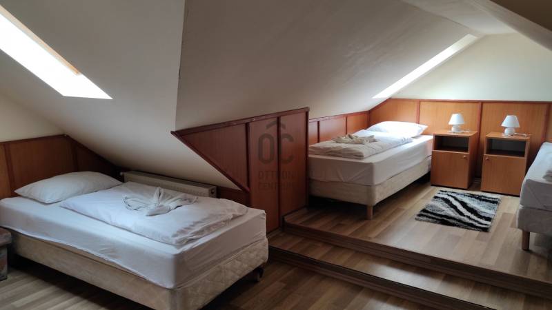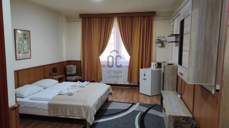 Mátraderecskén eladó a falu ikonikus fogadó-panziója, 18 szobás/fürdőszobás 1-2-3 ágyas szobákkal, plusz 36-42 fő étkeztetésére alkalmas étteremmel.Az ingatlanról készült bemutatóvideót megtekintheti az oc.hu weboldalon.A fogadó-panzió kizárólag az Otthon Centrum kínálatában érhető el!A hirdetési ár, nettó ár!Gyalog 1,5 km-re/20 percre van a Mofettától, a vendégek nagy része a széndioxidos kezelés miatt szál meg faluban, de egyéb kikapcsolódási lehetőségek is vannak a környéken.A fogadó-panzió egész évben üzemel, a Mofetta látogatói évszakoktól függetlenül, folyamatosan érkeznek.boltok, falu központ 5 percen belül elérhetők.A telek mérete 534 nm, gondozott terület. Az épület a \'70-es években épült, 2018-ban megújult arculattal fogadja a vendégeket.A panzió hasznos lakóterülete meghaladja a 500 nm-t, 3 szint: - alagsor: konyha, előkészítő helyiségek, étterem.- földszint: recepció, 9db apartmanszoba fürdőszobával.- emelet: 9db apartmanszoba fürdőszobával.A szomszédos épületet is megvásárolva esetleg bővíthető, további 300-400 nm-rel, garázsokkal, szobákkal....Összesen 18 lakószobával rendelkezik, teljes foglaltság esetén akár 36 fő (+pótágyak) befogadására alkalmas.A fogadóval szemben egy hatalmas, árnyékos parkoló várja a szállóvendégeket.Az épülethez tartozik egy kb. 30 nm-es pince is...Az épületek külső nyílászárói műanyagból és hang- és hőszigetelt fából vannak, a belső nyílászárók fából készültek.A lakószobák laminált padlóval, a többi helyiség pedig járólappal van burkolva.Az épület fűtéséről gázkazán gondoskodik, a meleg vizet két gázbojler szolgáltatja.A fogadó-panzió teljes berendezéssel együtt eladó. Céggel együtt is megvásárolható, az irányár nem tartalmazza az áfát.A képek és a videó a figyelem felkeltésére szolgál, de komoly érdeklődőknek az összes nagy felbontású fényképet is rendelkezésére bocsátom (kb.110db).Az épületek méretarányos elrendezését a képek között megtalálható 3D-s alaprajz mutatja.A 3D alaprajzok cm-re pontosan, az eredeti méretek alapján készültek, ezeket a komoly érdeklődők rendelkezésére bocsátom a megtekintés után, hasznos lehet a tervezés és a berendezés során ;-) .Ha a hirdetés felkeltette az érdeklődését és kérdése van, kérem hívjon a megadott telefonszámomon.Ingatlanirodánk teljeskörűen segíti az ingatlanok adásvételét, ügyvéd, bankfüggetlen hitelügyintéző, energetikus és a lelkes ingatlanközvetítő is rendelkezésére áll akár hétvégén, vagy ünnepnapokon is ;-)