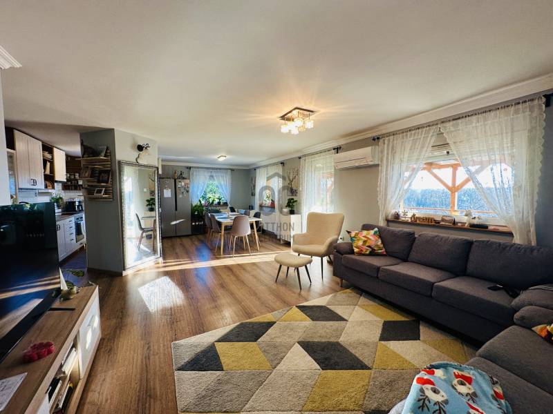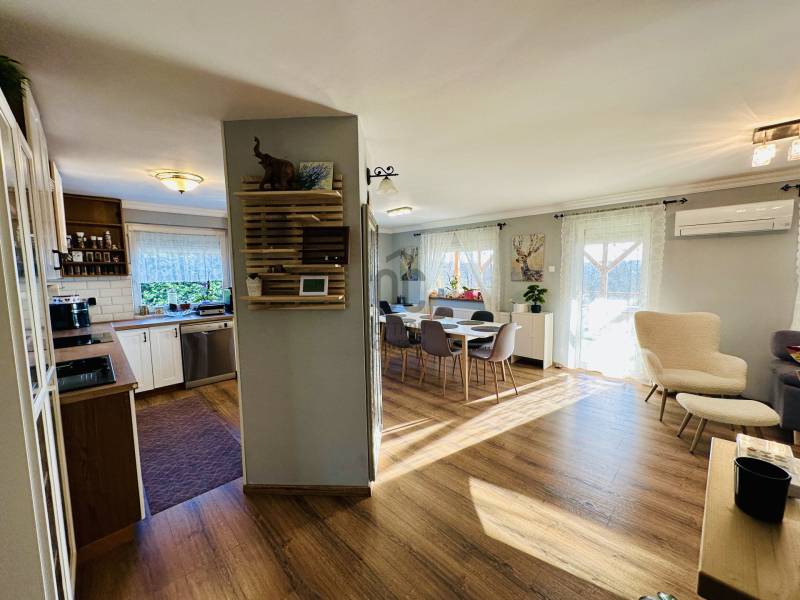 Eladó Mogyoród csendes, igényes környezetében egy kiváló elosztású, 3 szintes, 129 m²-es családi ház, amely 1208 m²-es telken helyezkedik el. Az ingatlan ideális választás lehet családok számára, akik nyugodt, zöld környezetben szeretnének élni, mégis Budapest közelében.A ház tágas, világos terekkel rendelkezik, a nappaliból pedig egy hangulatos, panorámás terasz nyílik, amely tökéletes helyszíne lehet pihenésnek vagy baráti, családi összejöveteleknek.Az ingatlan elosztásaA 3 szintes ház praktikus kialakítású:1. Alsó szint-45 m²-es garázs-tárolásra is alkalmas kiszolgáló terek2. Földszint-tágas nappali teraszkapcsolattal- 2 db külön nyíló szobák-fürdőszoba-előszoba-WC-tároló3. Emelet-2 db tágas szoba-fürdőszoba (gépészet kialakítva, burkolásra vár)-Közlekedő, melyből egy hangulatos fedett erkélyre jutunk. Összesen:nappali + 4 szoba2 fürdőszobaKomfort és műszaki tartalom:-Vegyes-tüzelésű kazán puffer tartállyal-radiátoros fűtés-padlófűtés a nappaliban, előtérben és az alsó szinti fürdőben-3 db Wifis klíma (2 az emeleten, 1 a földszinten)- minden nyílászárón alumínium redőny Telek és extrák:-1208 m²-es telek-elektromos autó töltő kiépítve-ásott kút-fedett autóbeálló-elektromos kovácsoltvas kapu-rendezett, kellemes környezet Lokáció:Mogyoród egyre népszerűbb település Budapest közvetlen közelében, amely kiváló választás azoknak, akik a város közelsége mellett nyugodt, zöld környezetben szeretnének élni. A közelben megtalálhatók iskolák, óvodák, boltok, valamint a közlekedés is kedvező.M3-as autópálya pár percnyire. Ha felkeltette érdeklődését keressen bizalommal a hét bármely napján.